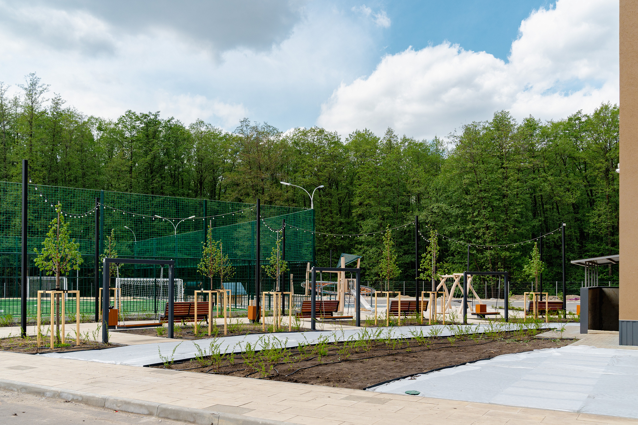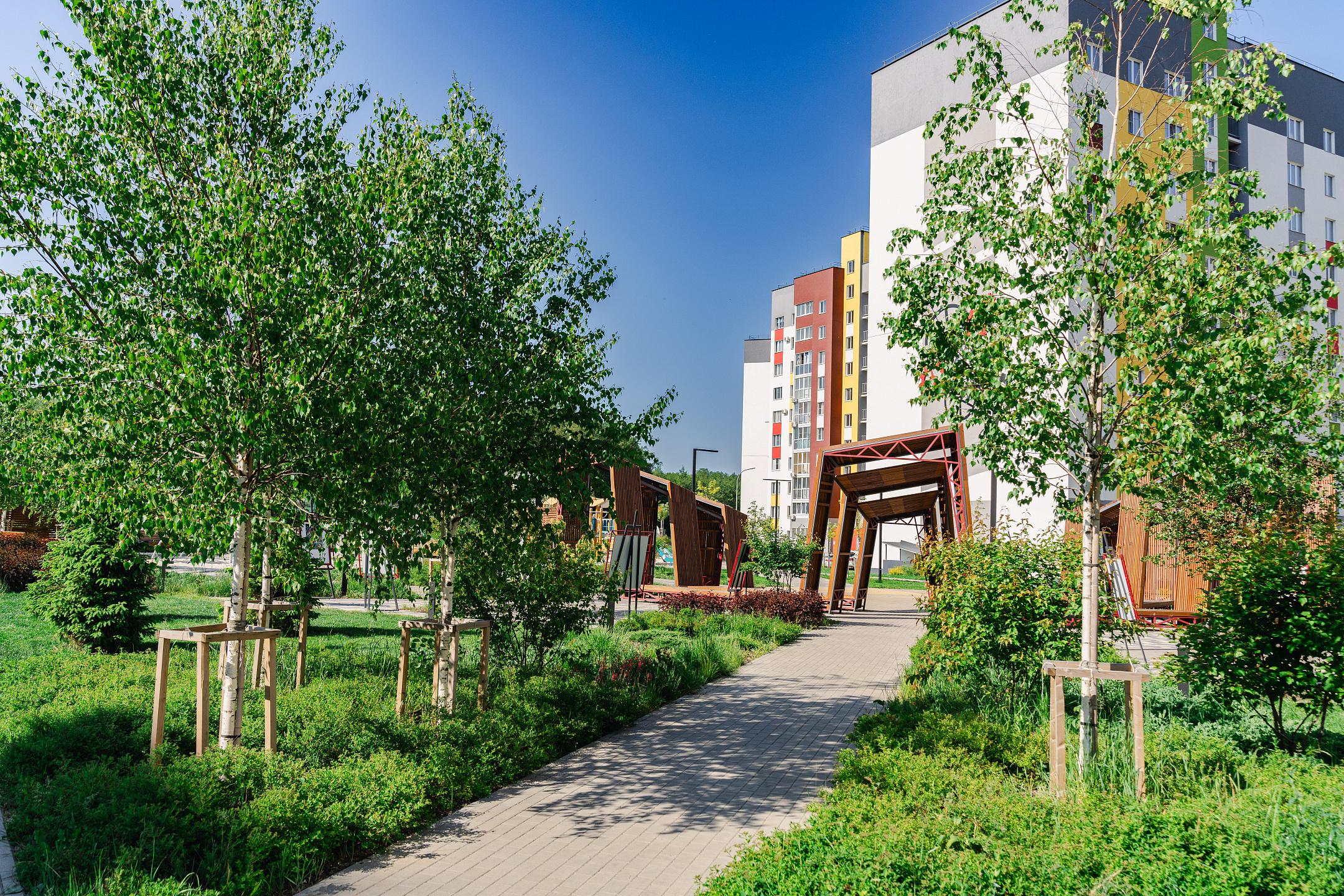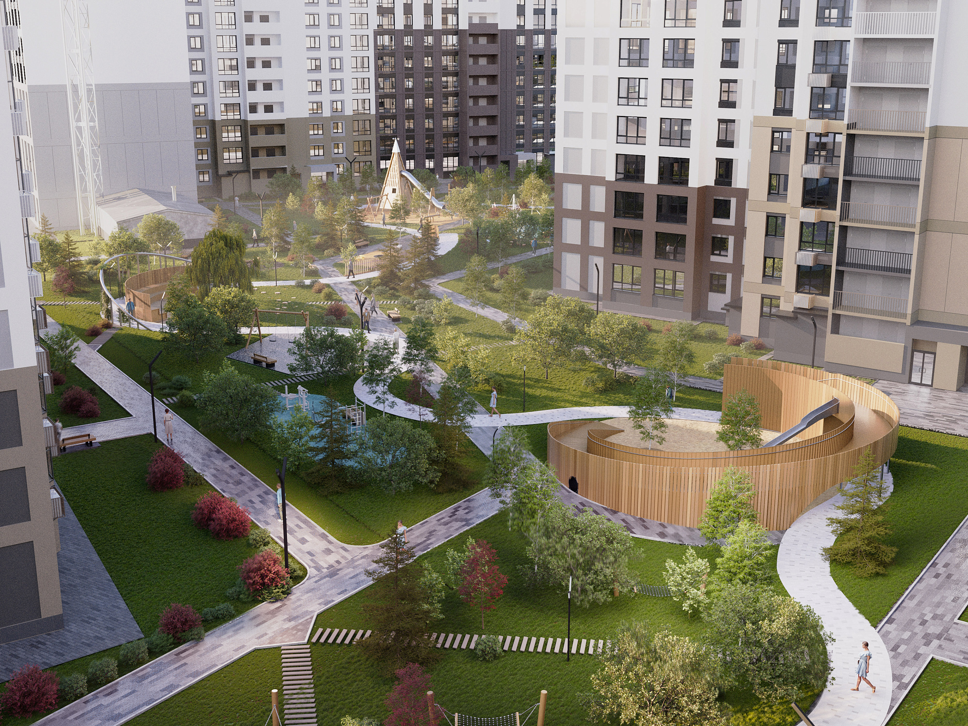 Двор наполнен современными игровыми площадками и мостиками. Для взрослых мы предусмотрели зону отдыха с лежаками, гамаками, уютные беседки и амфитеатр. Для любителей спорта — воркаут-зоны. Все это гармонично дополняется пышным озеленением. Финальный кадр киноленты – уютная кофейня с одноименным названием, которая завершает аллею. Здесь можно насладиться ароматным кофе, перекусить или взять напиток с собой, чтобы продолжить прогулку.