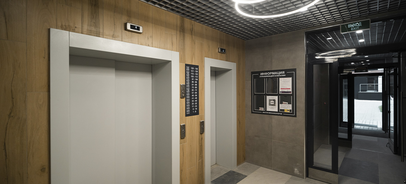 Панорамное остекление входных групп позволяет наполнить пространство подъездов и холлов воздухом и светом, сделать их визуально просторнее и выше. Межквартирные холлы и подъезды отделаны по специально разработанному дизайн-проекту и отделаны керамогранитом спокойных оттенков. Современные лифты Щербинского завода, крупнейшего в России разработчика и производителя лифтового оборудования.