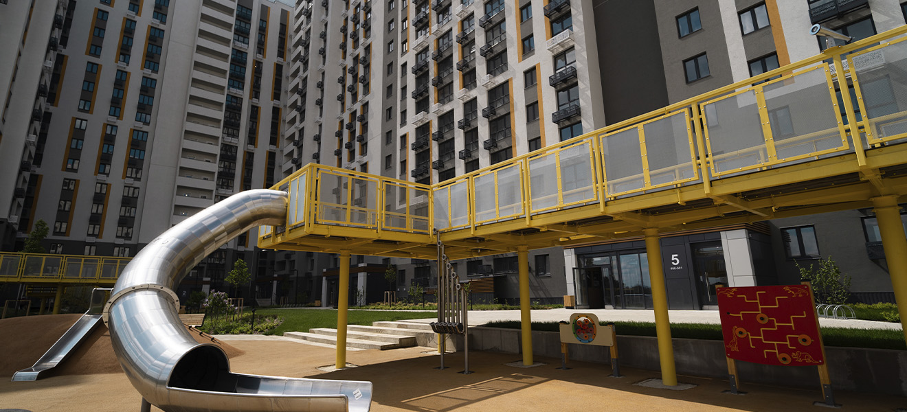 Подъезды – это визитная карточка «ИНСТЕП». Безбарьерная среда, вход с уровня земли, проходные лифты, просторные холлы и стильные интерьеры – все это создано для удобства жителей.