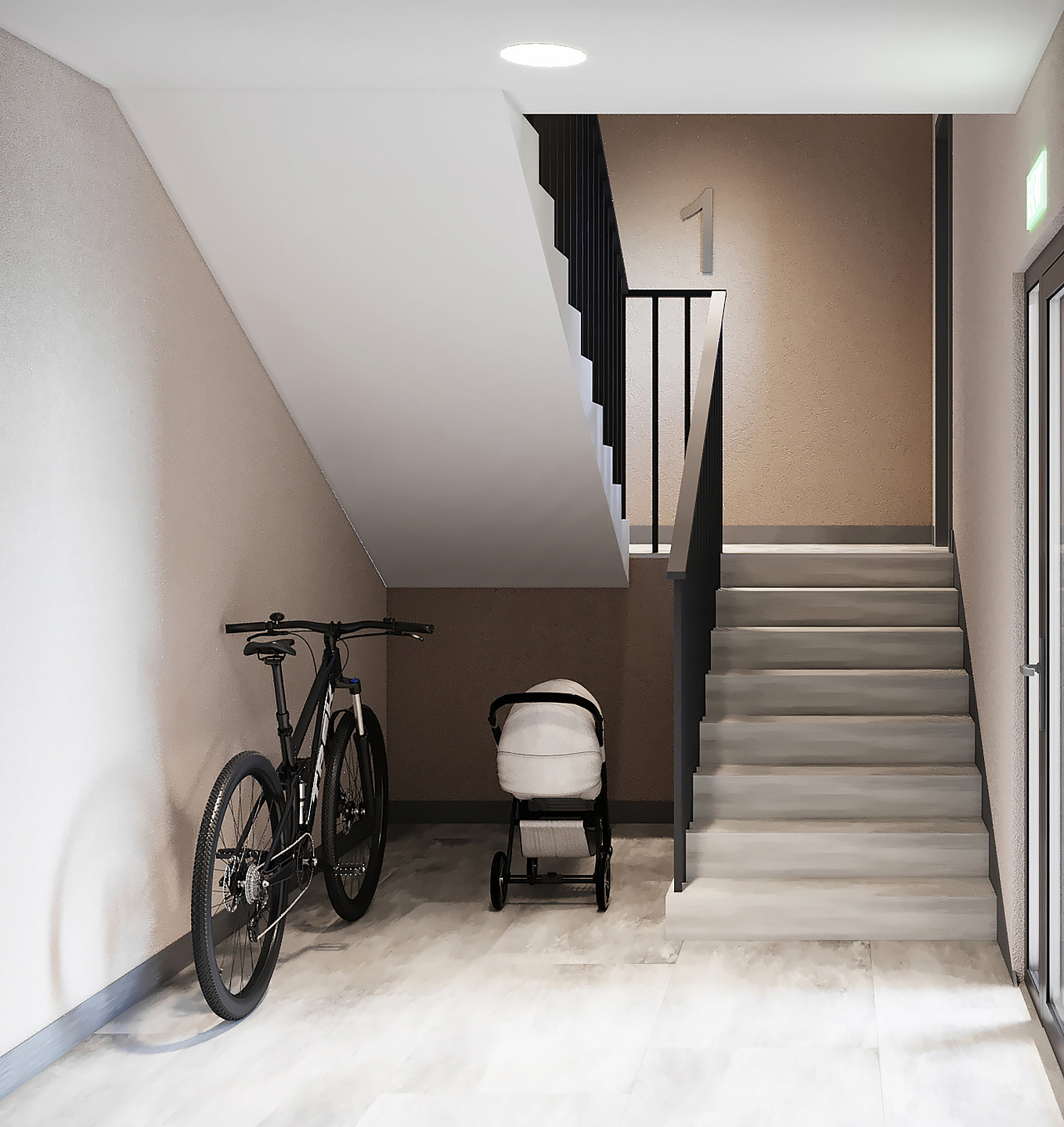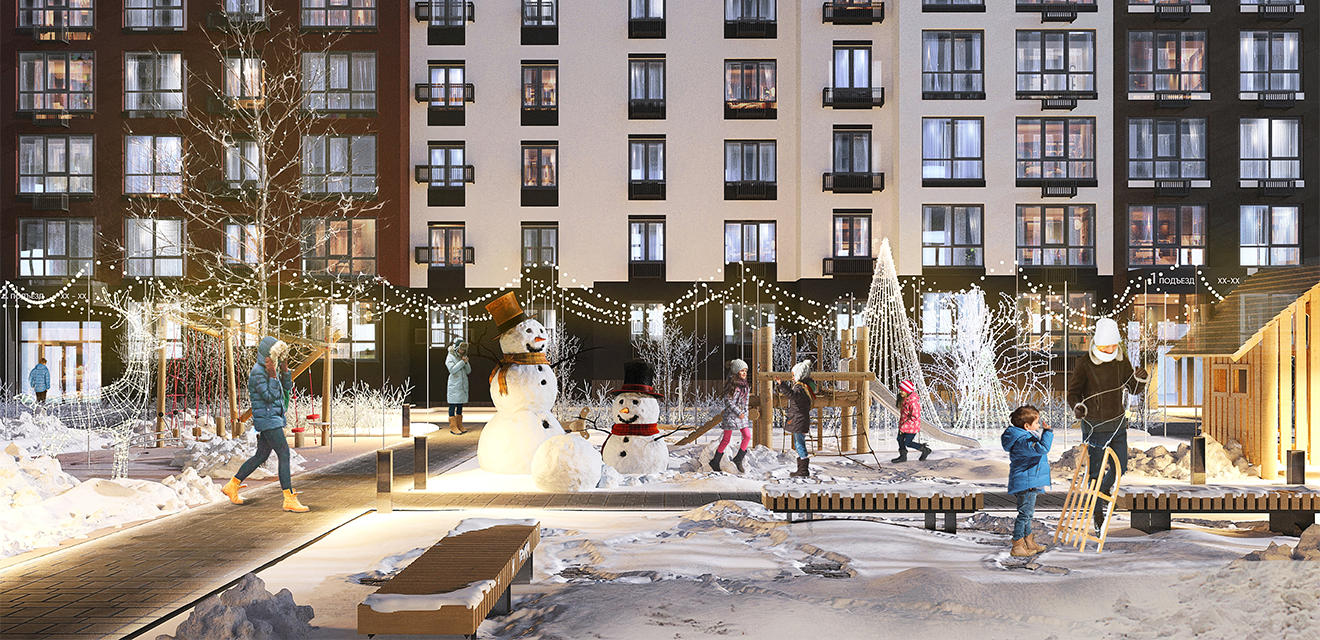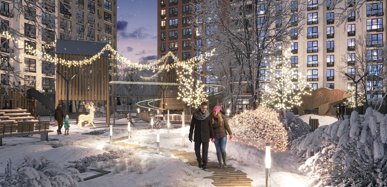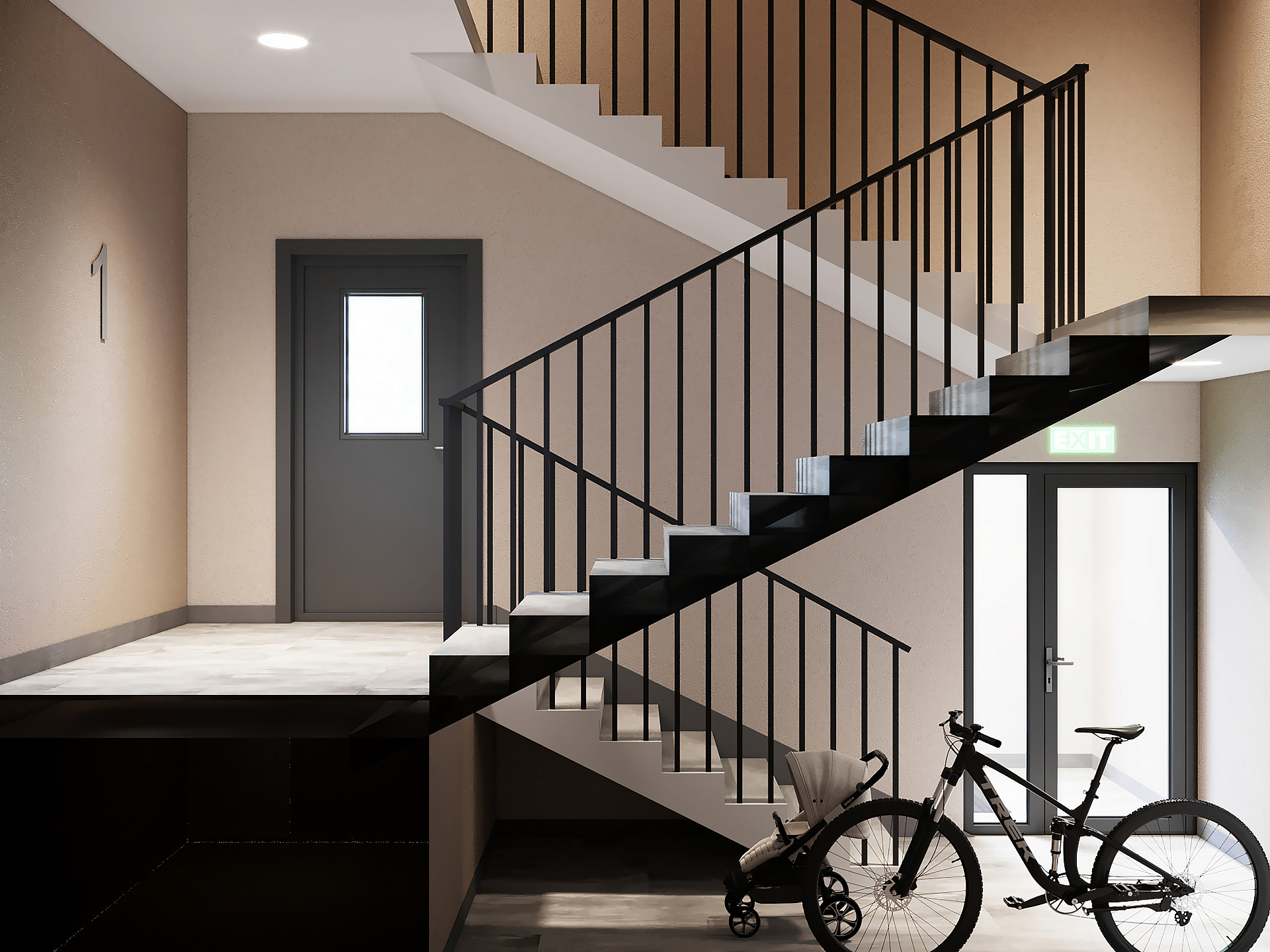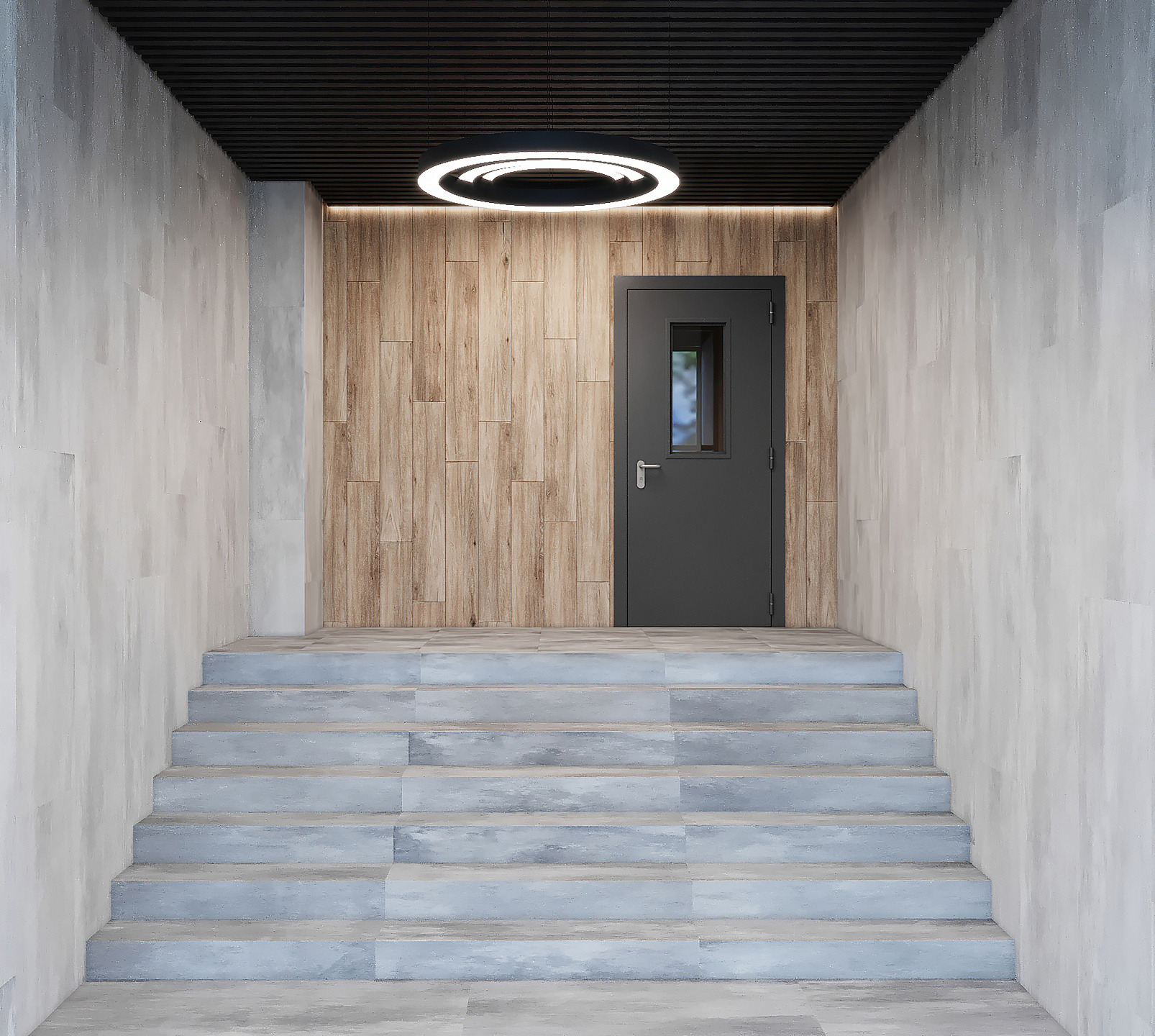 Межквартирные холлы и подъезды будут отделаны по специально разработанному дизайн-проекту. Для поддержания концепции жилого комплекса будут использованы природные материалы, крупноформатный керамогранит, панорамное остекление, наполняющее помещение светом, а также стильные светильники и люстры. Витражи и входные двери на первом этаже выполнены из алюминия.