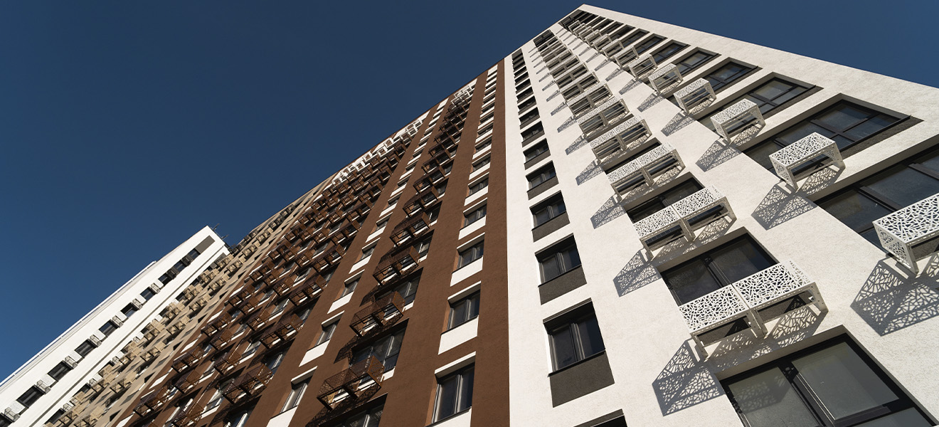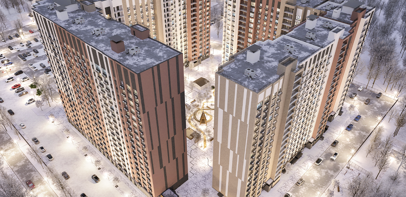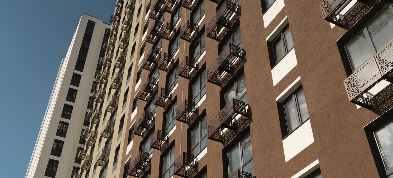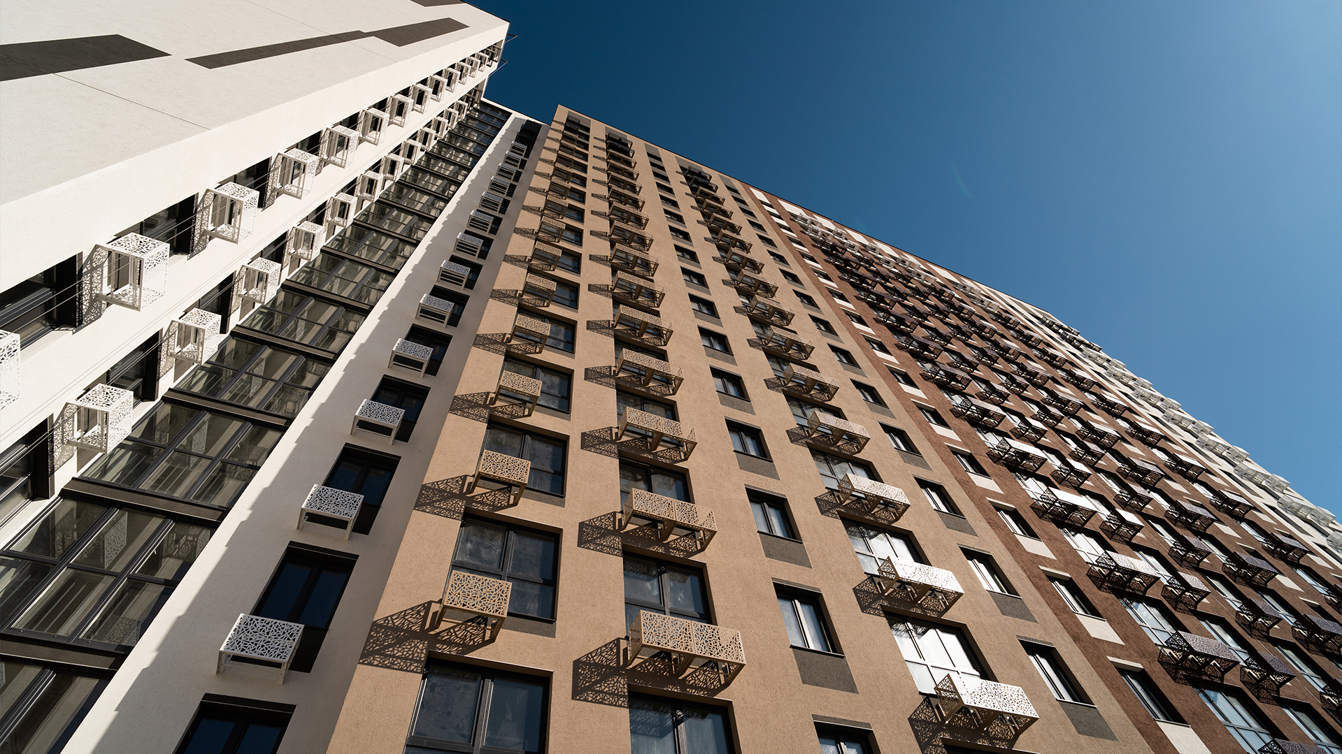 Архитектура жилого комплекса сочетает в себе функциональность, эстетику и современные тенденции в дизайне, что делает его привлекательным выбором для тех, кто ценит комфорт и стиль. Благодаря тщательно подобранной цветовой гамме фасадов, жилой комплекс становится настоящим украшением района. Увеличенное остекление придаёт домам лёгкость и воздушность, а также обеспечивает отличное естественное освещение квартир. Большие окна не только украшают фасады, но и позволяют жителям наслаждаться прекрасными видами на окрестности. Для удобства жителей предусмотрены специальные корзины для кондиционеров, которые сохраняют эстетичный вид фасадов.