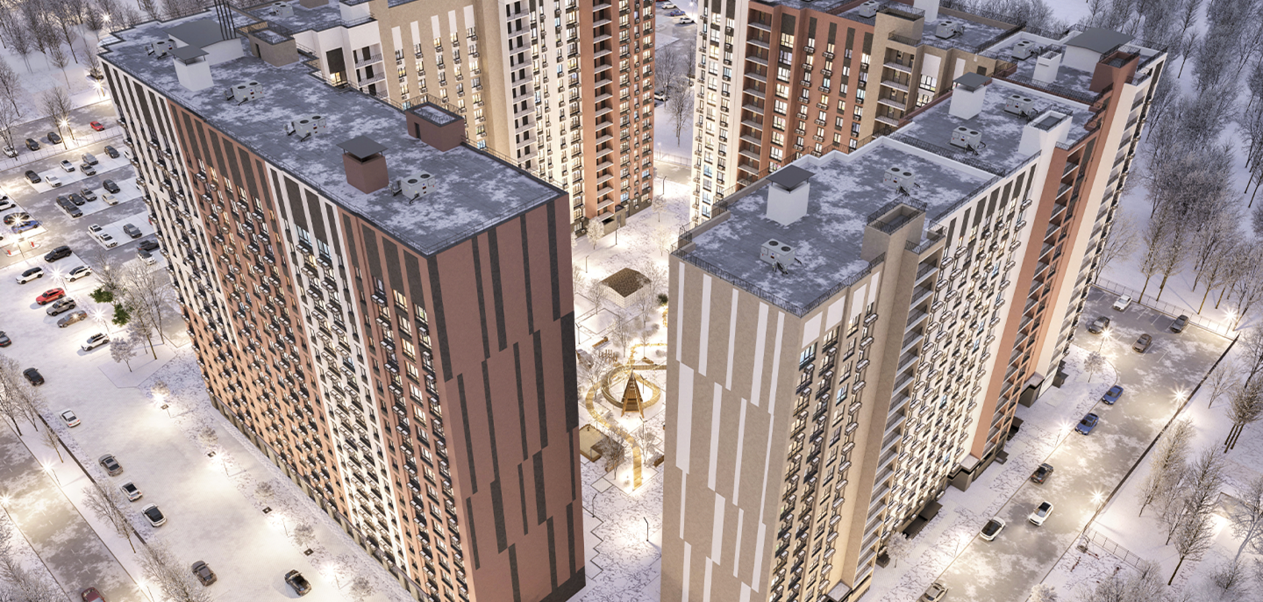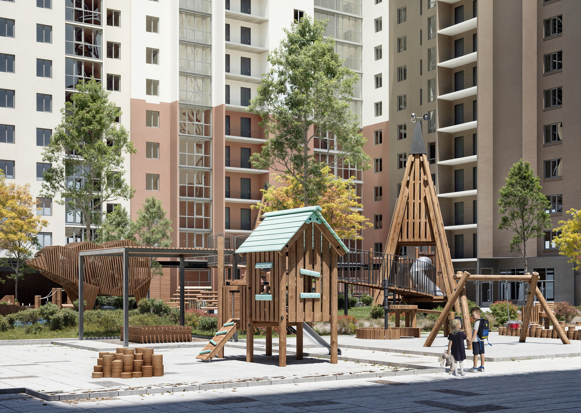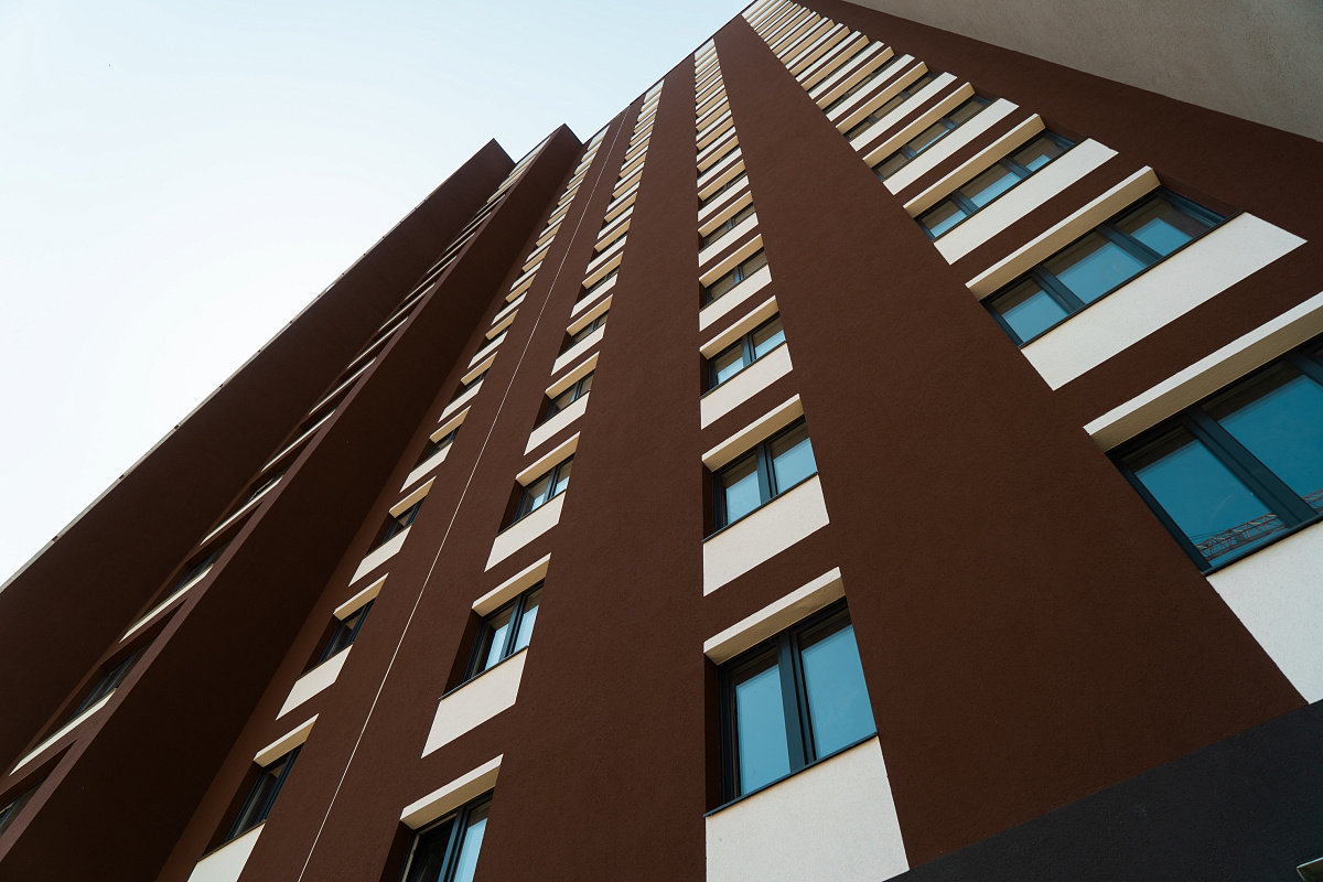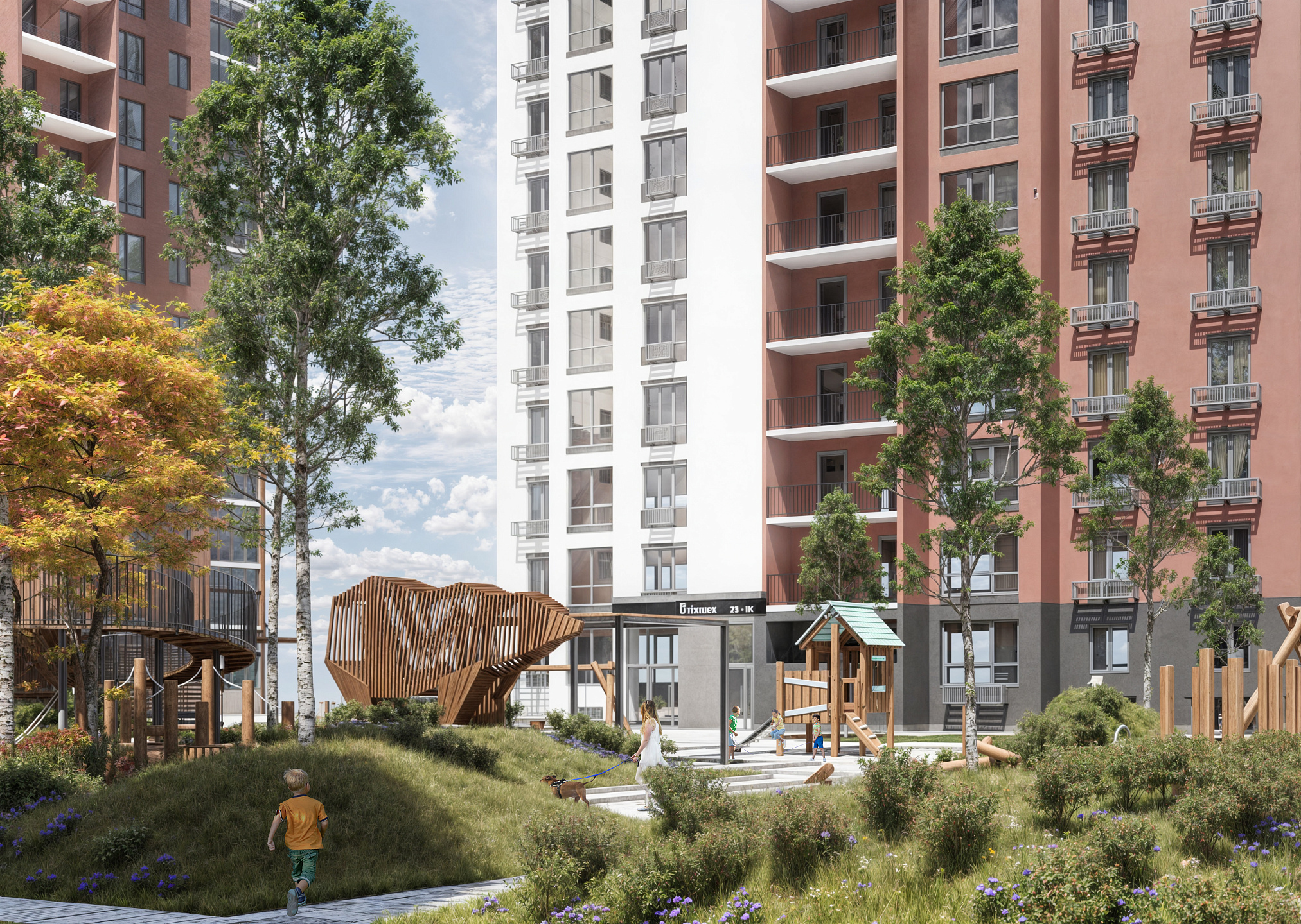 Архитектура жилого комплекса сочетает в себе функциональность, эстетику и современные тенденции в дизайне, что делает его привлекательным выбором для тех, кто ценит комфорт и стиль. Благодаря тщательно подобранной цветовой гамме фасадов, жилой комплекс становится настоящим украшением района. Увеличенное остекление придаёт домам лёгкость и воздушность, а также обеспечивает отличное естественное освещение квартир. Большие окна не только украшают фасады, но и позволяют жителям наслаждаться прекрасными видами на окрестности. Для удобства жителей предусмотрены специальные корзины для кондиционеров, которые сохраняют эстетичный вид фасадов.