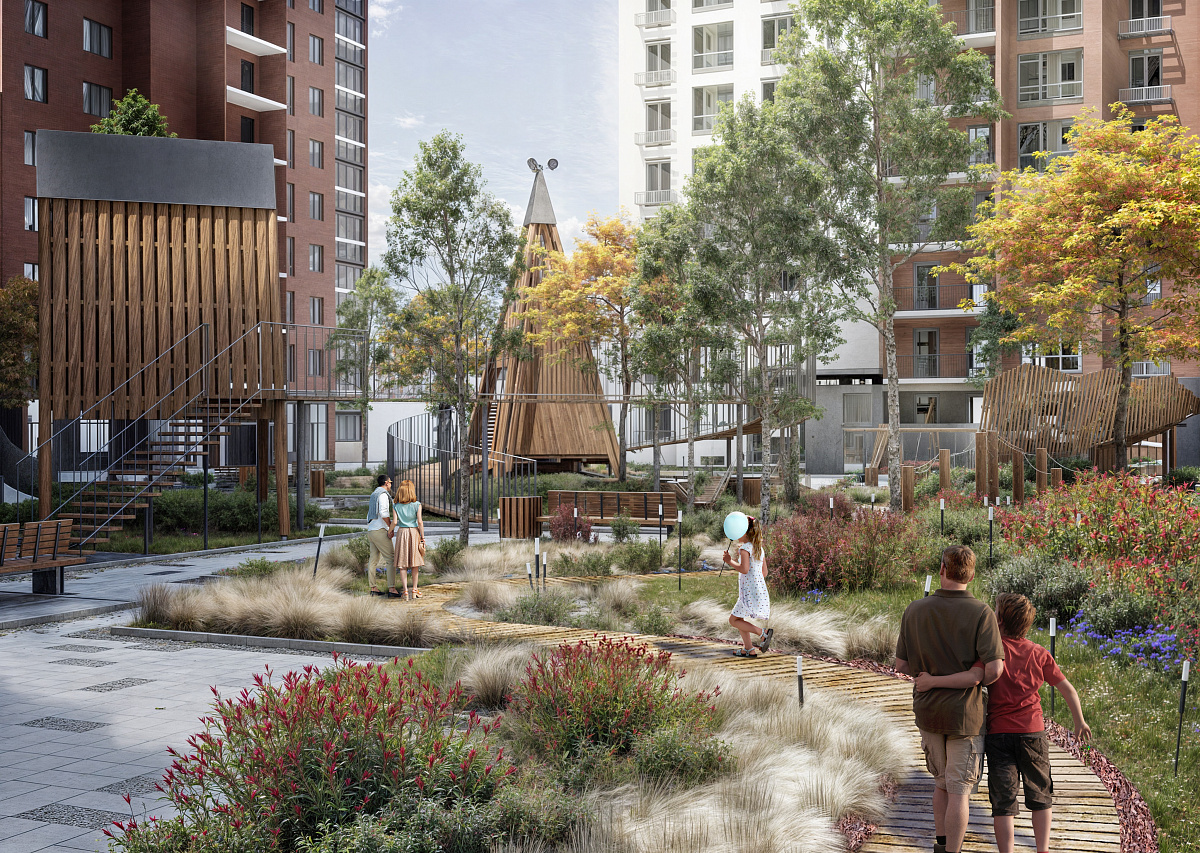 В «ИНСТЕП.ПЕРОВА» разработана уникальная концепция благоустройства, вдохновленная творчеством В. Г. Перова и его произведением «Охотники на привале». Основной упор сделан на гармонию с природой, что придает территории особое очарование. Прямо под окнами планируется пространство для пикников, общения с друзьями, занятий спортом, игр и свиданий.