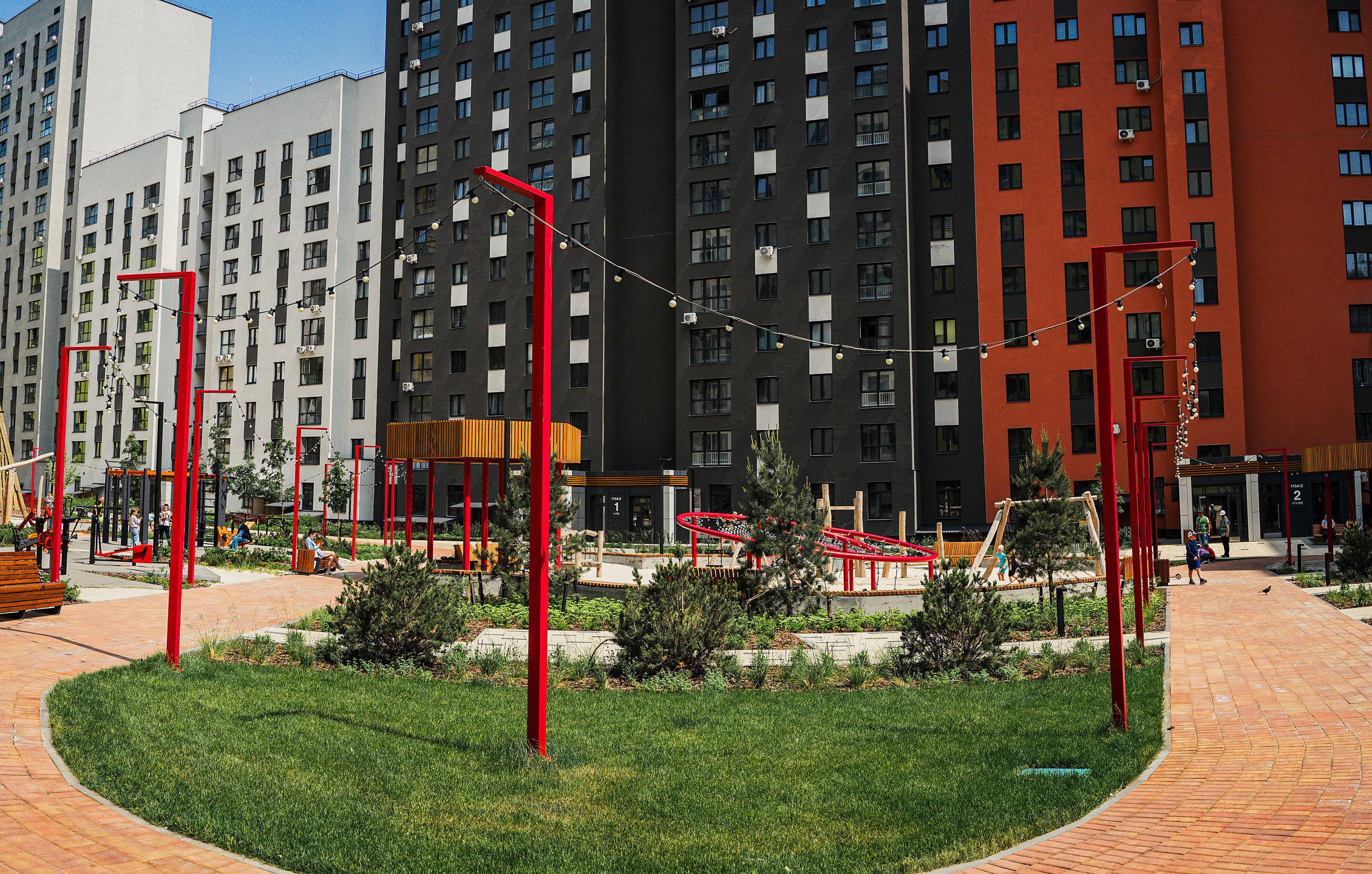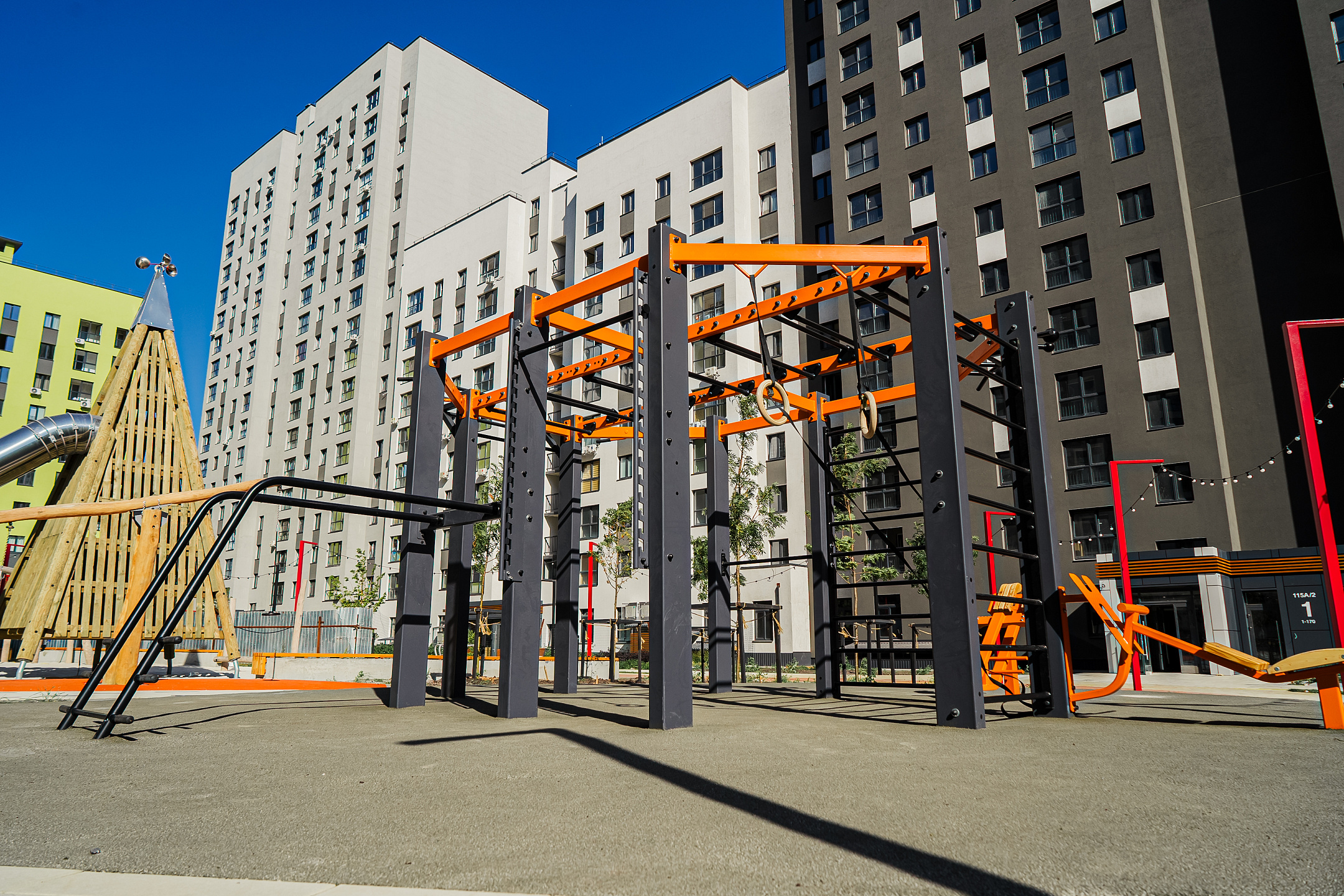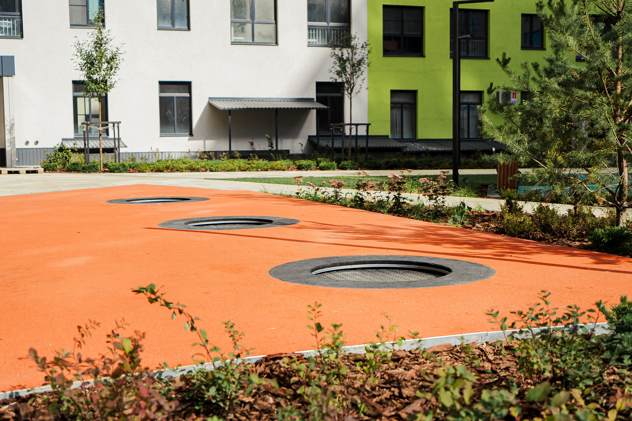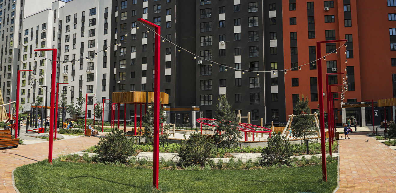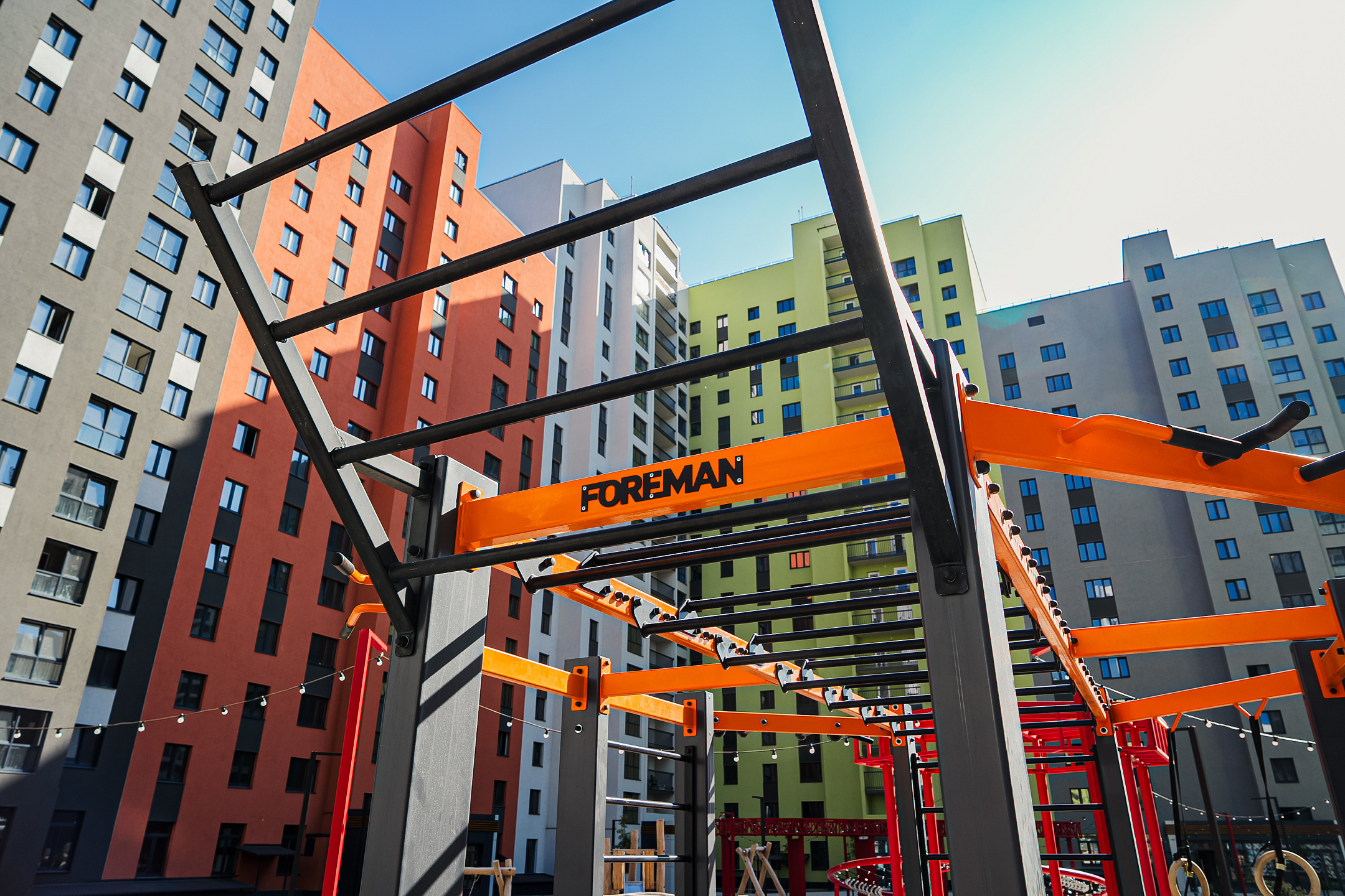 Территория ЖК включает большое количество элементов, напоминающих детали и запчасти различных механизмов. Озеленение, уникальное оборудование, беседки и малые архитектурные формы - все подчеркивает идентичность места. Подробнее в презентации.