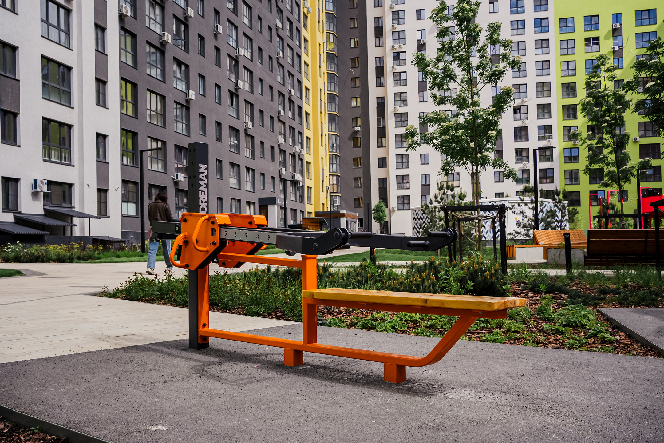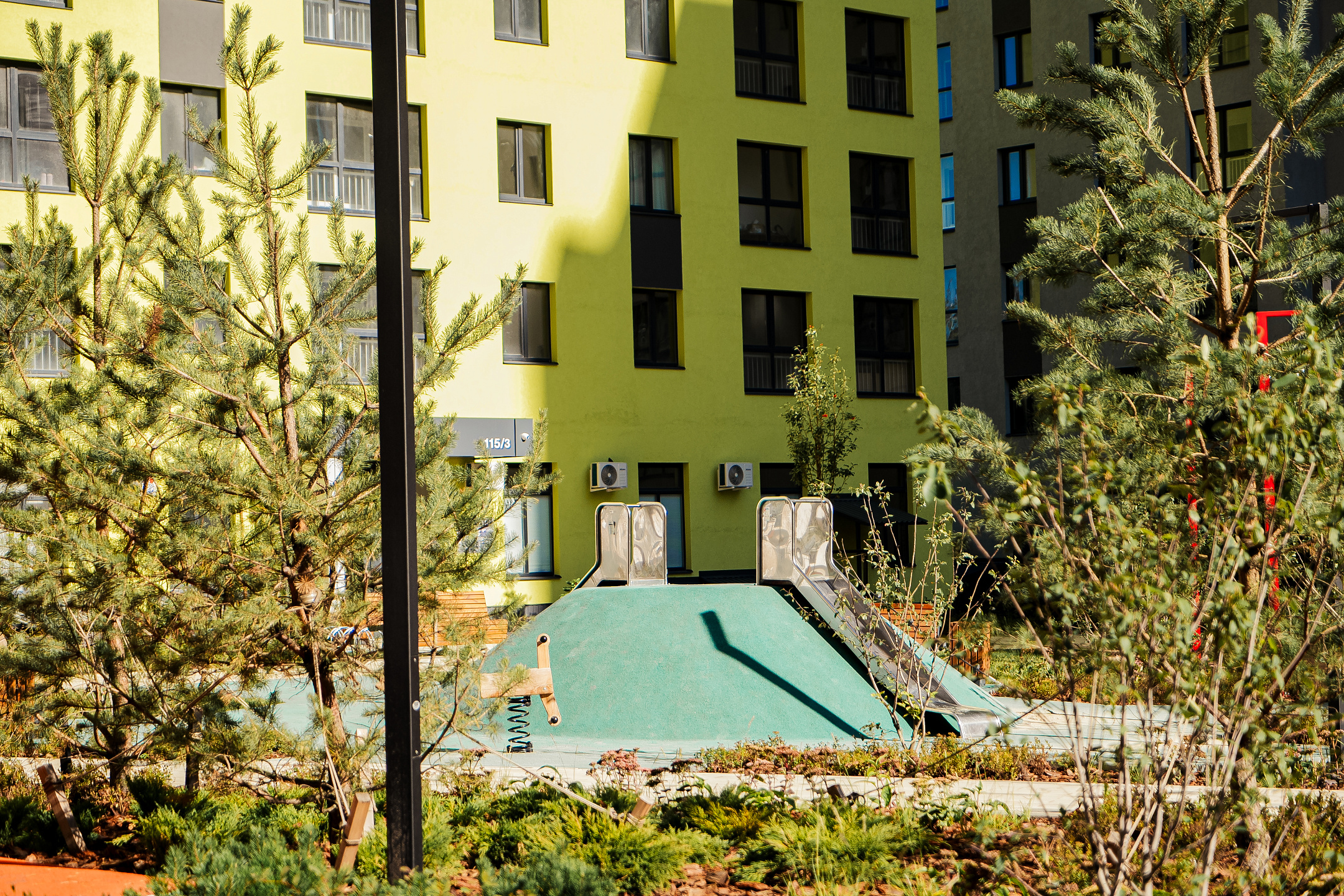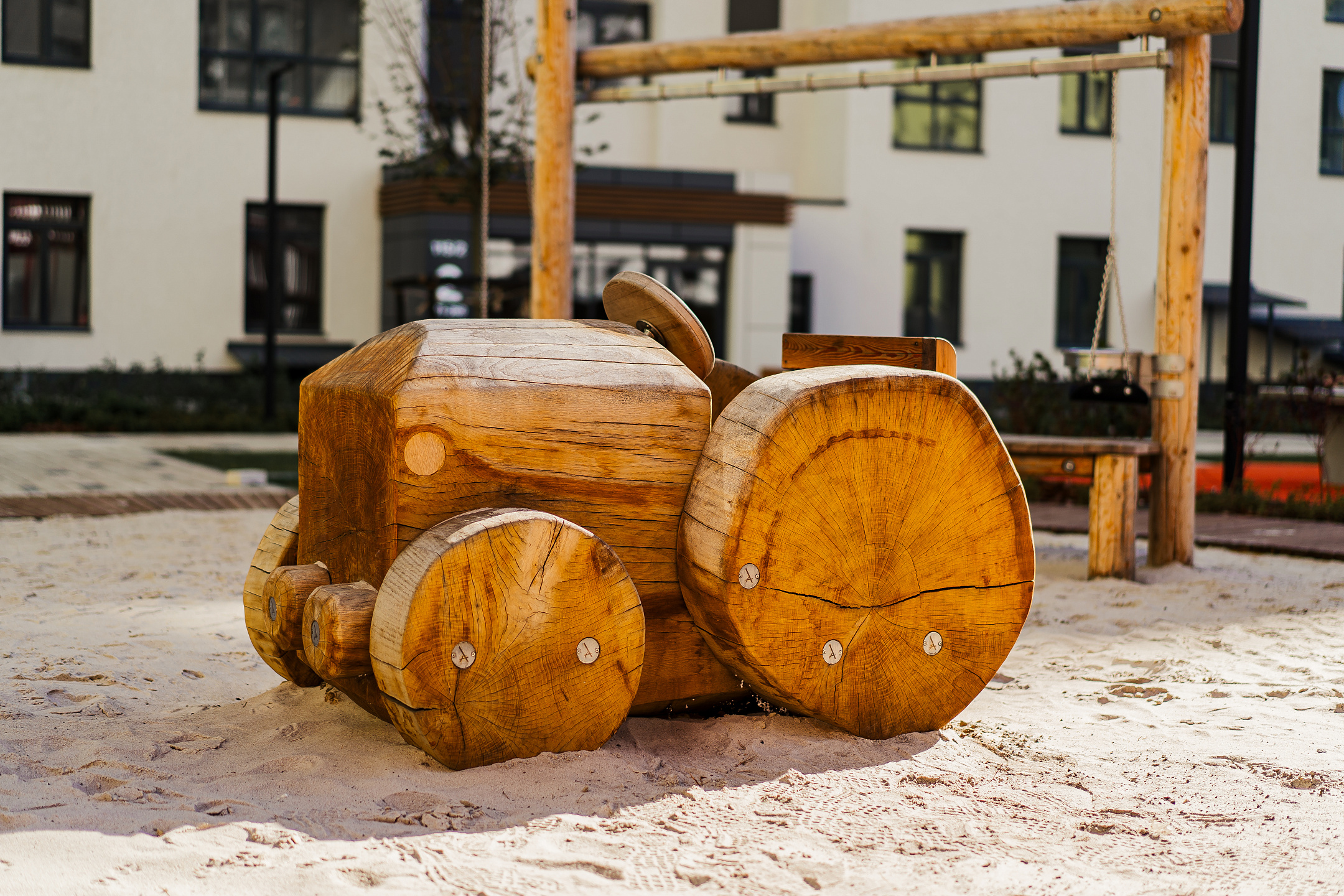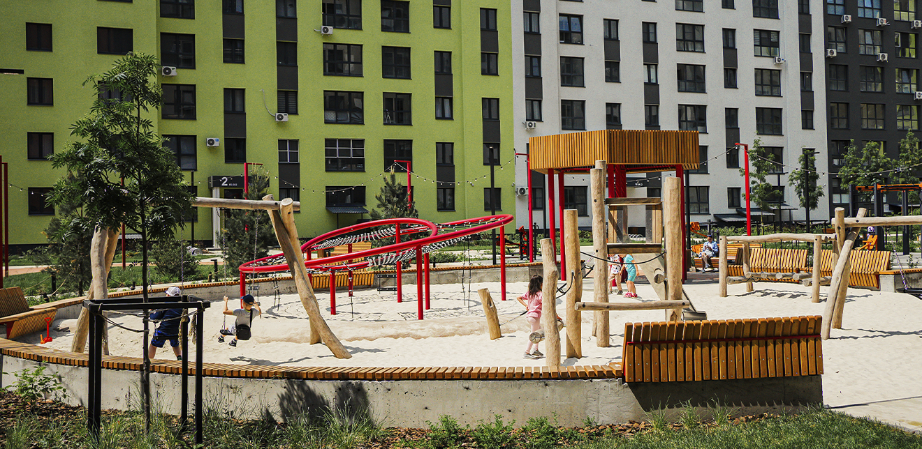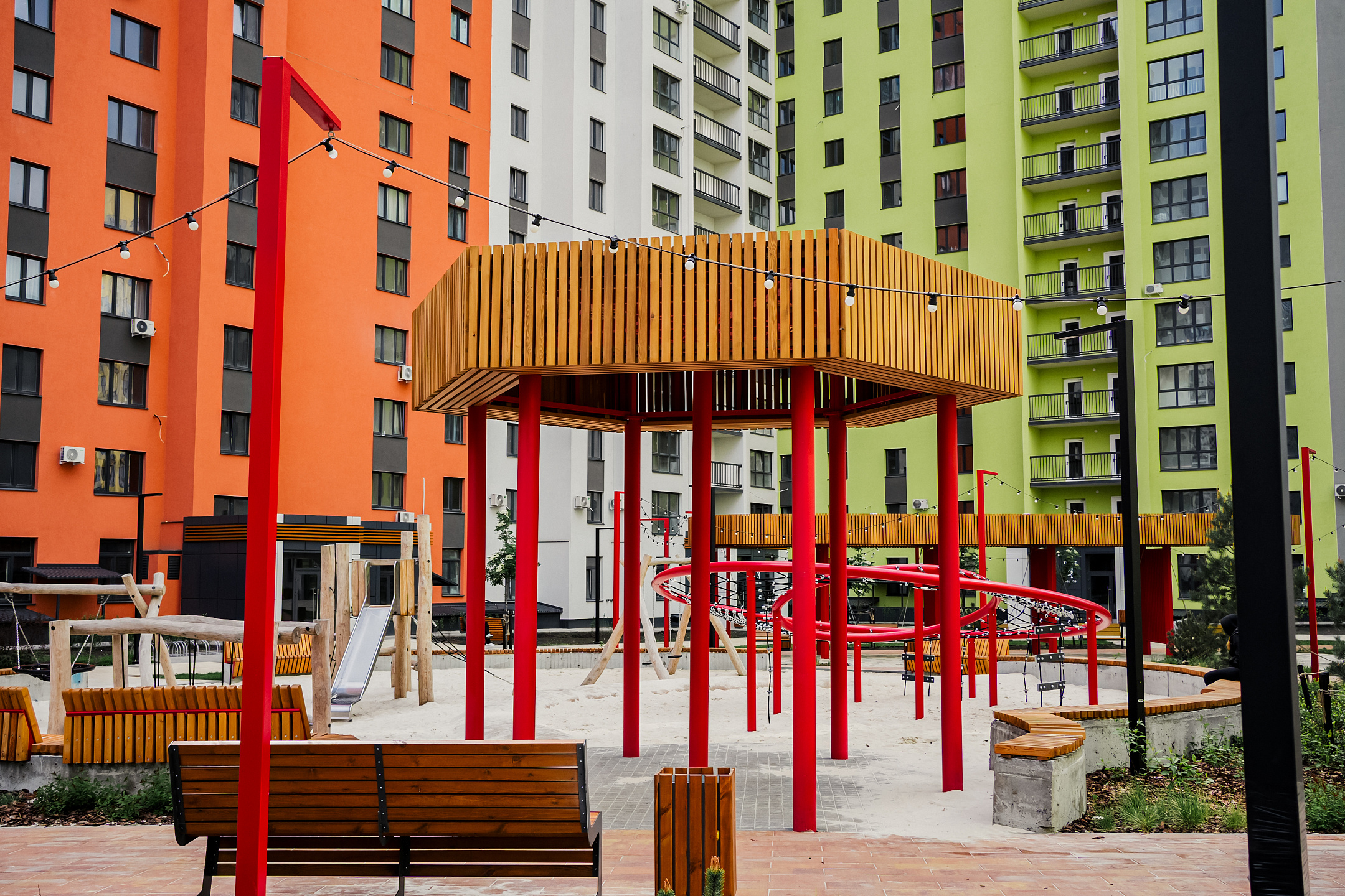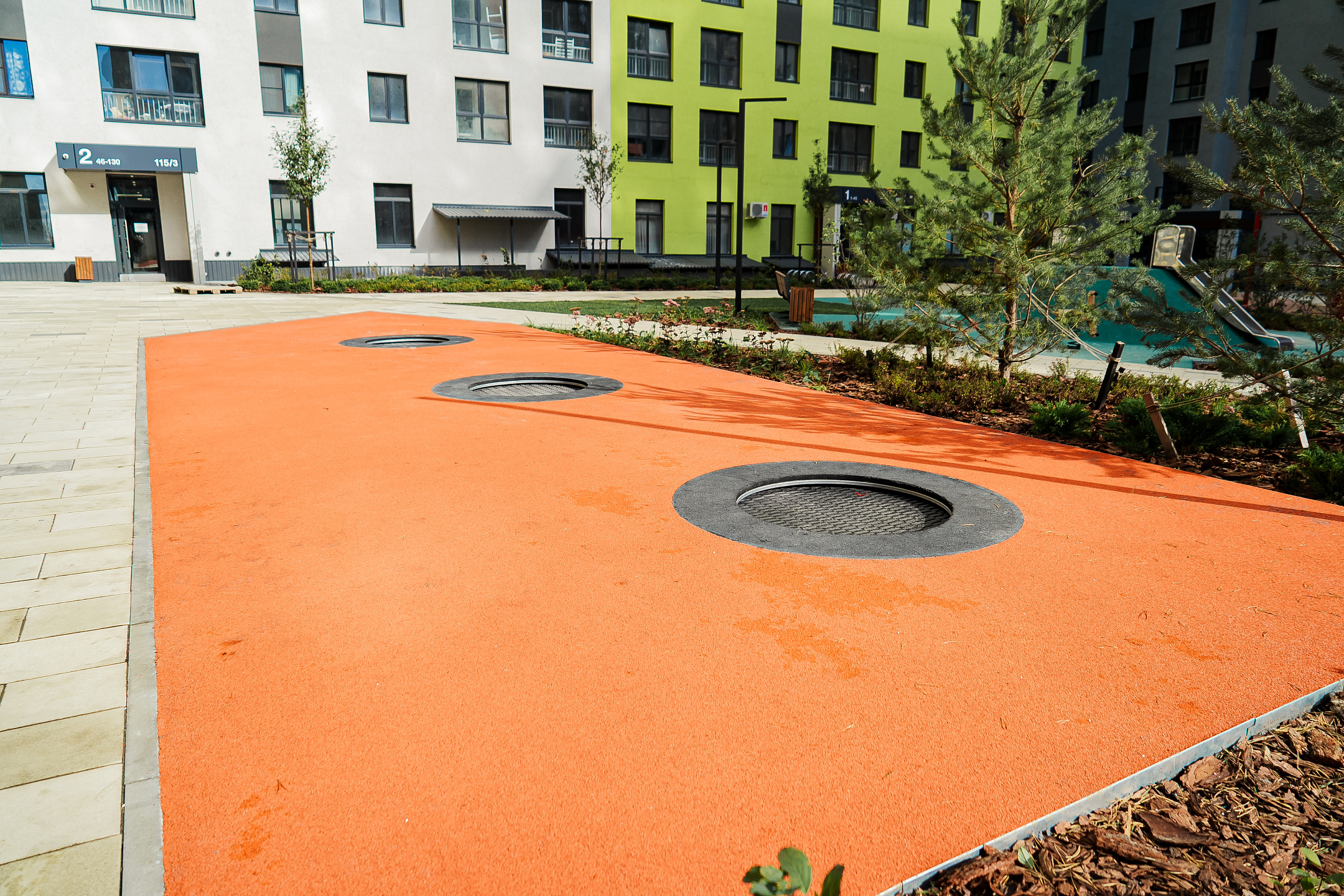 Территория ЖК включает большое количество элементов, напоминающих детали и запчасти различных механизмов. Озеленение, уникальное оборудование, беседки и малые архитектурные формы - все подчеркивает идентичность места. Подробнее в презентации.