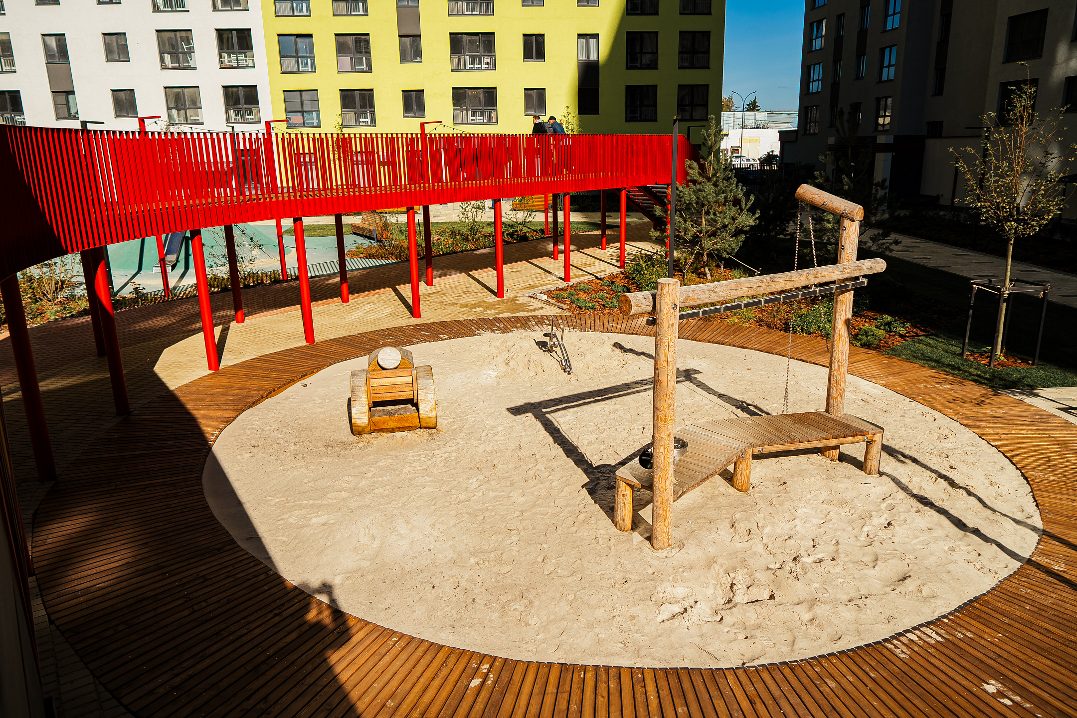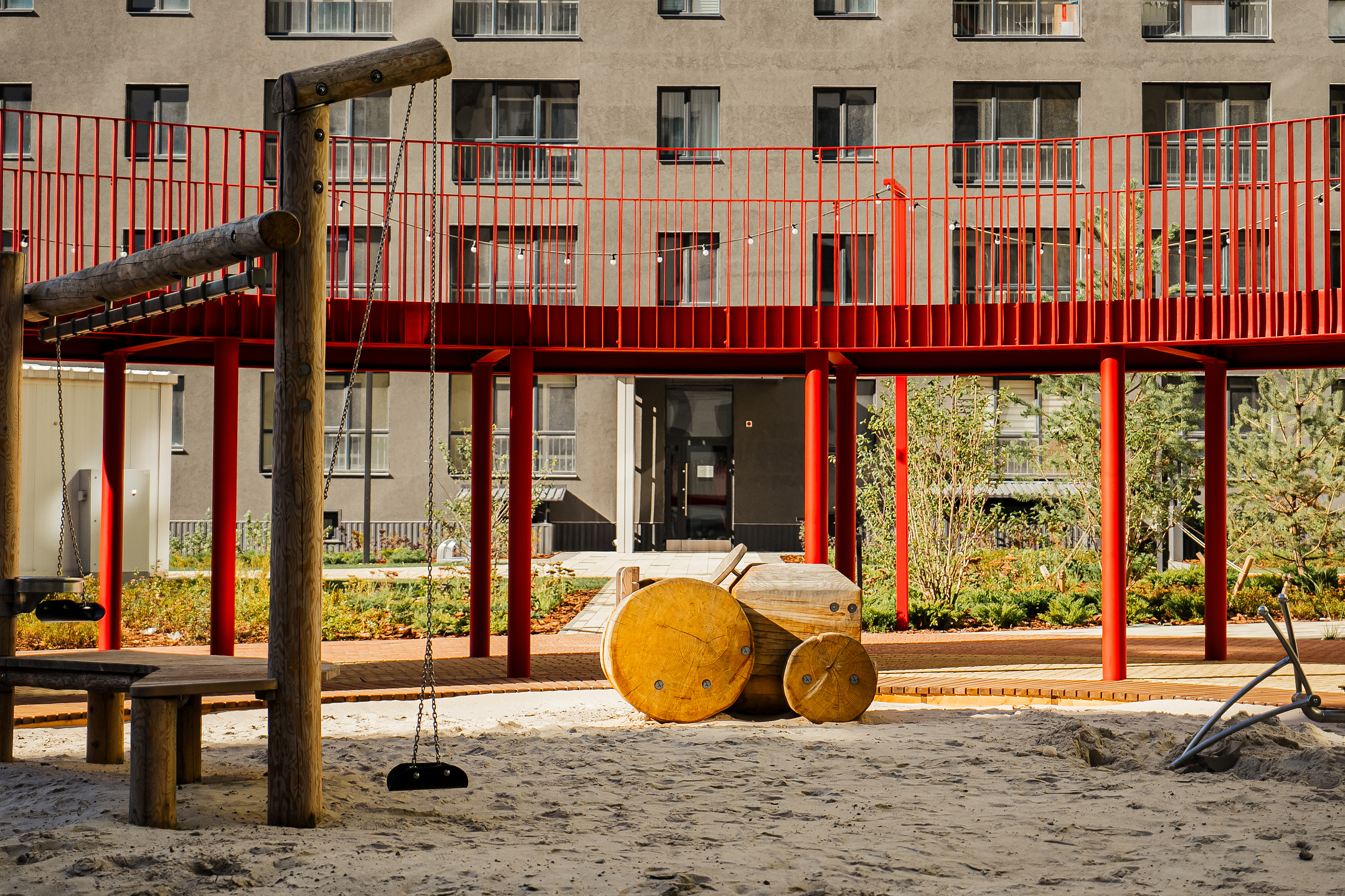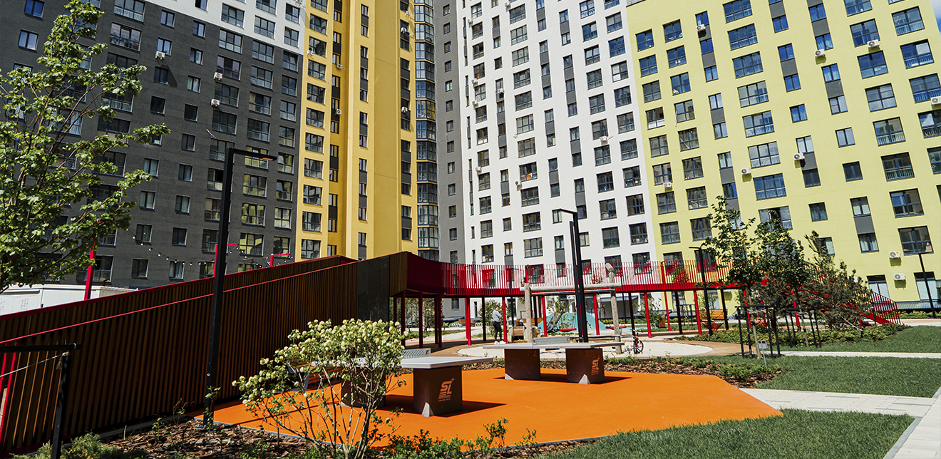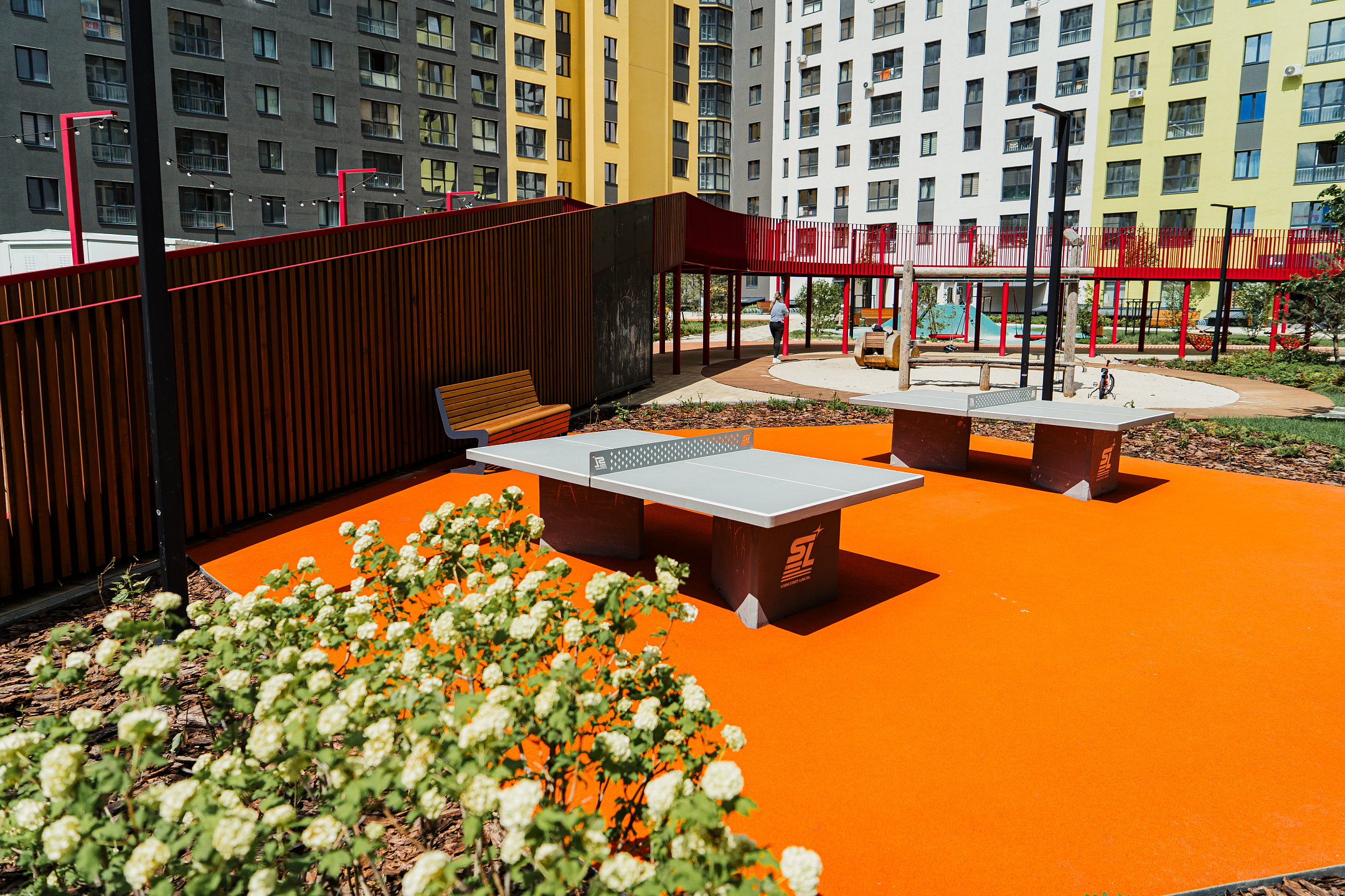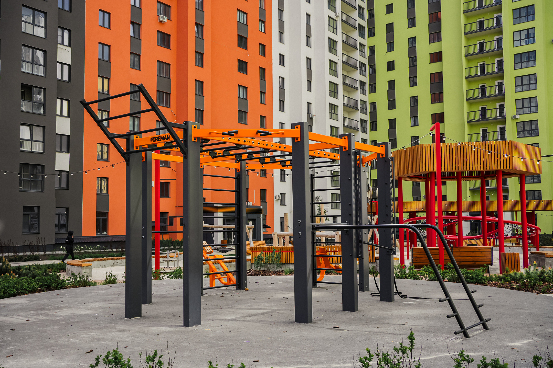 Территория ЖК включает большое количество элементов, напоминающих детали и запчасти различных механизмов. Озеленение, уникальное оборудование, беседки и малые архитектурные формы - все подчеркивает идентичность места. Подробнее в презентации.
