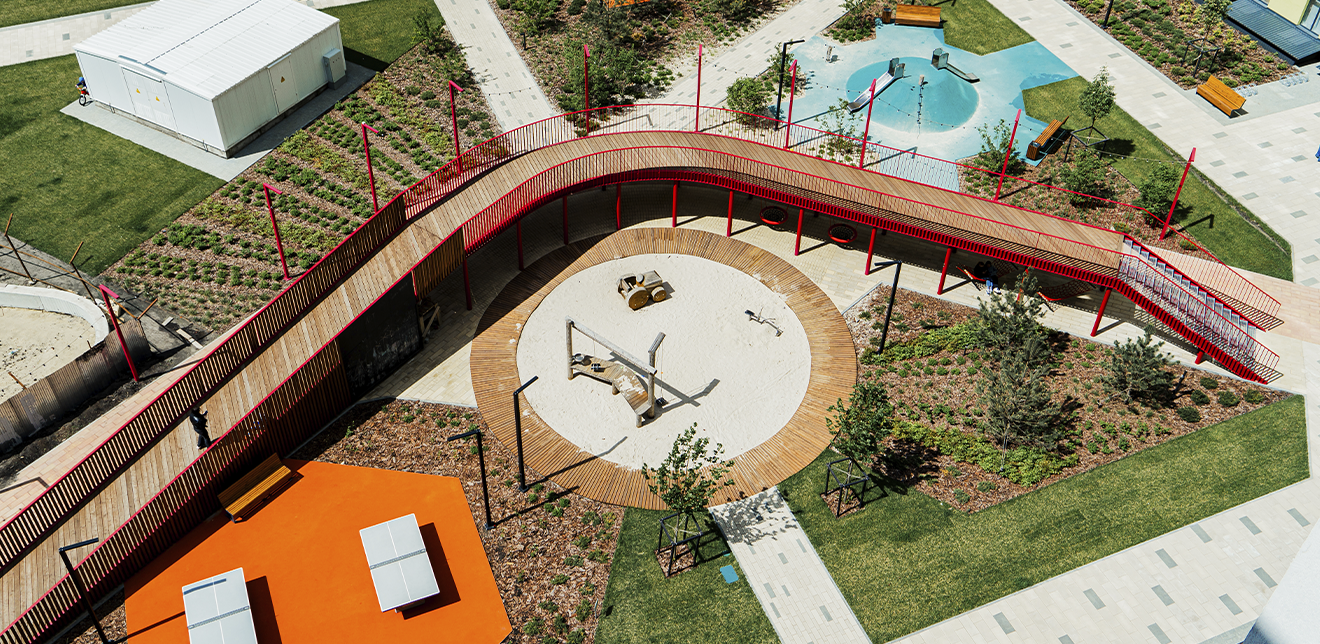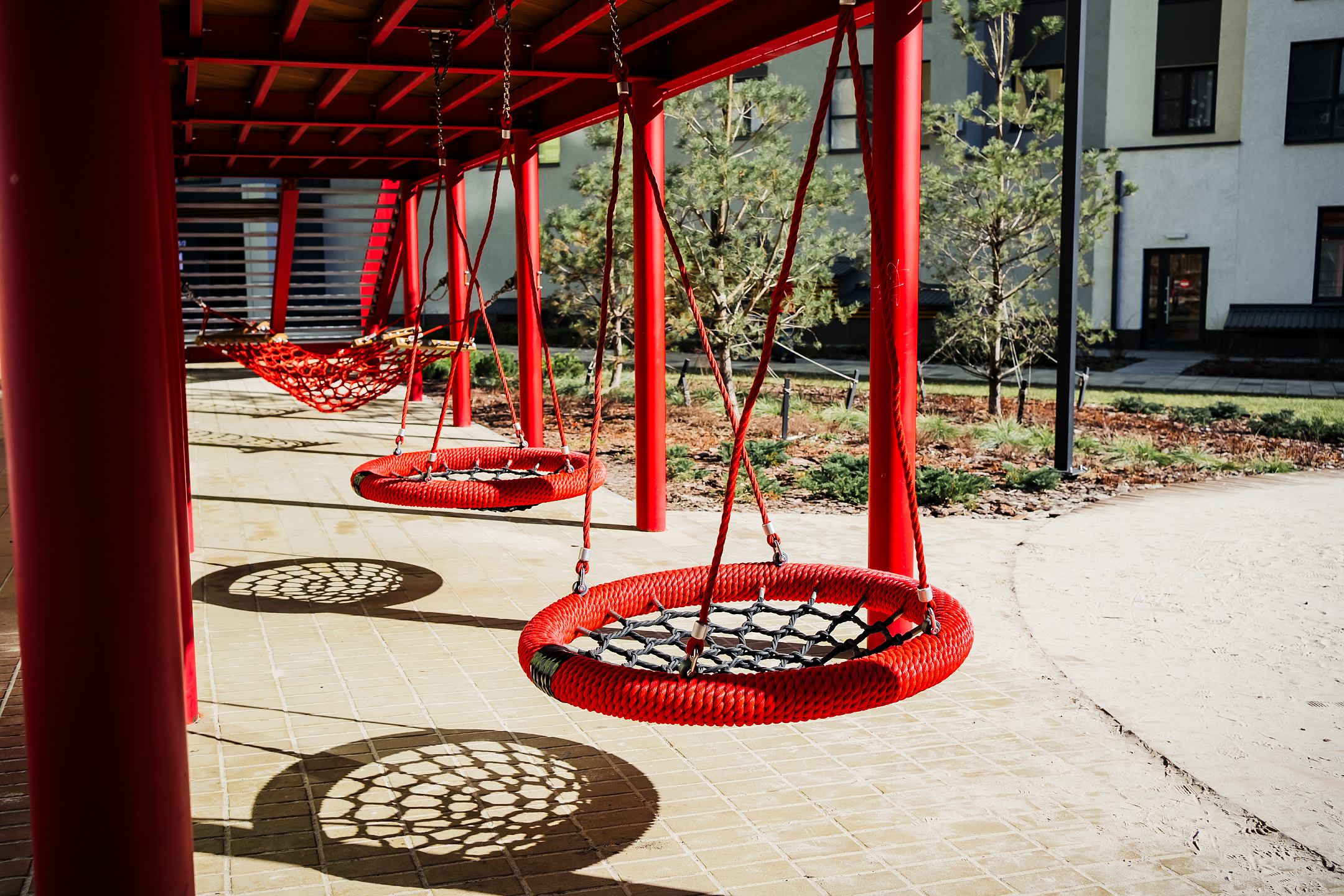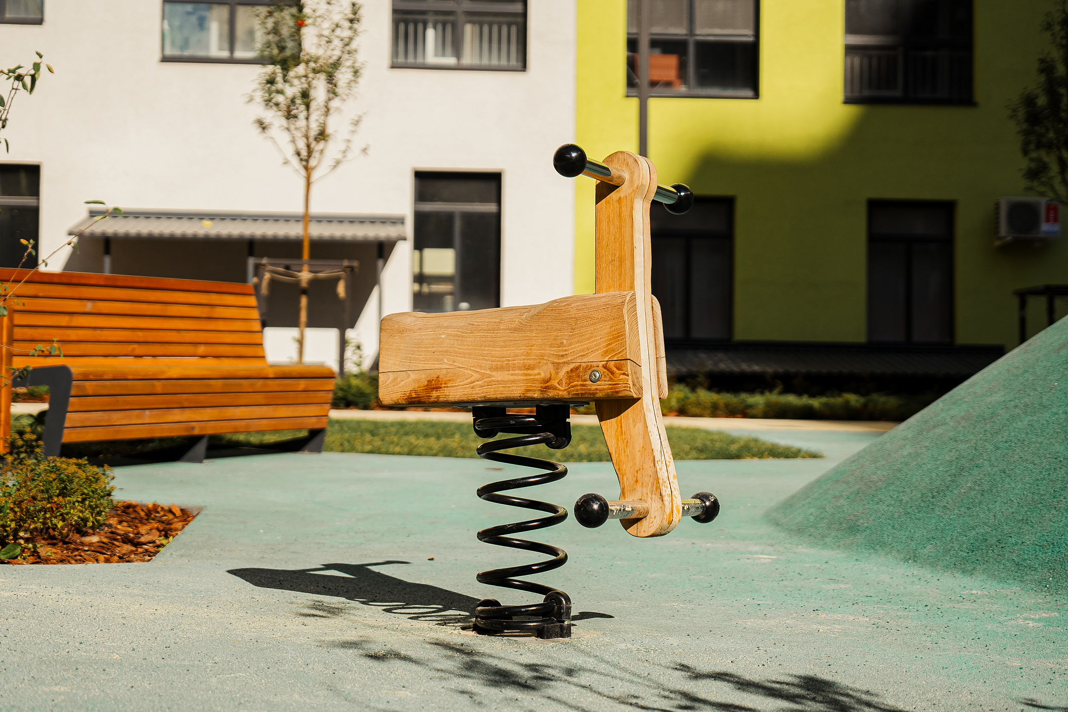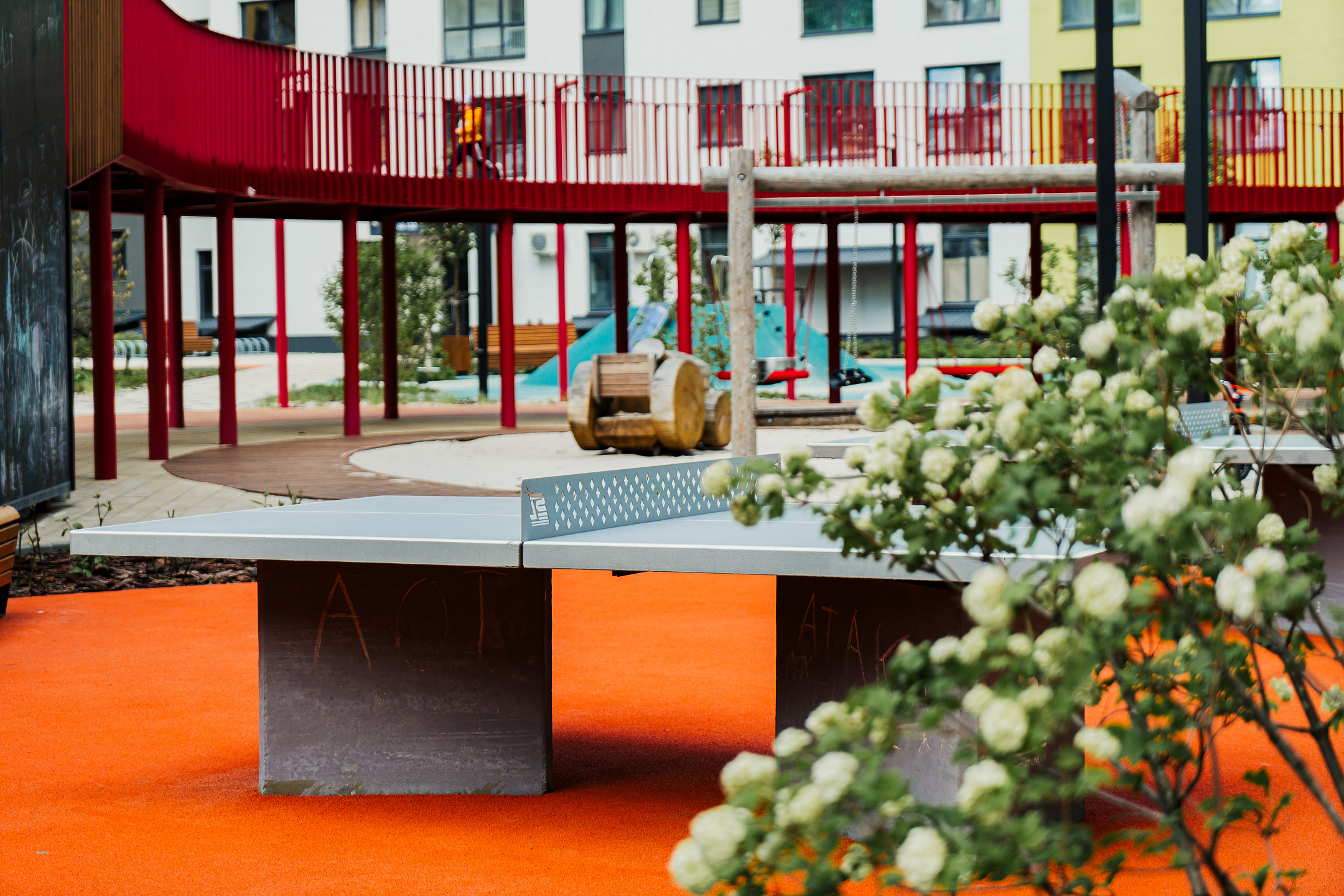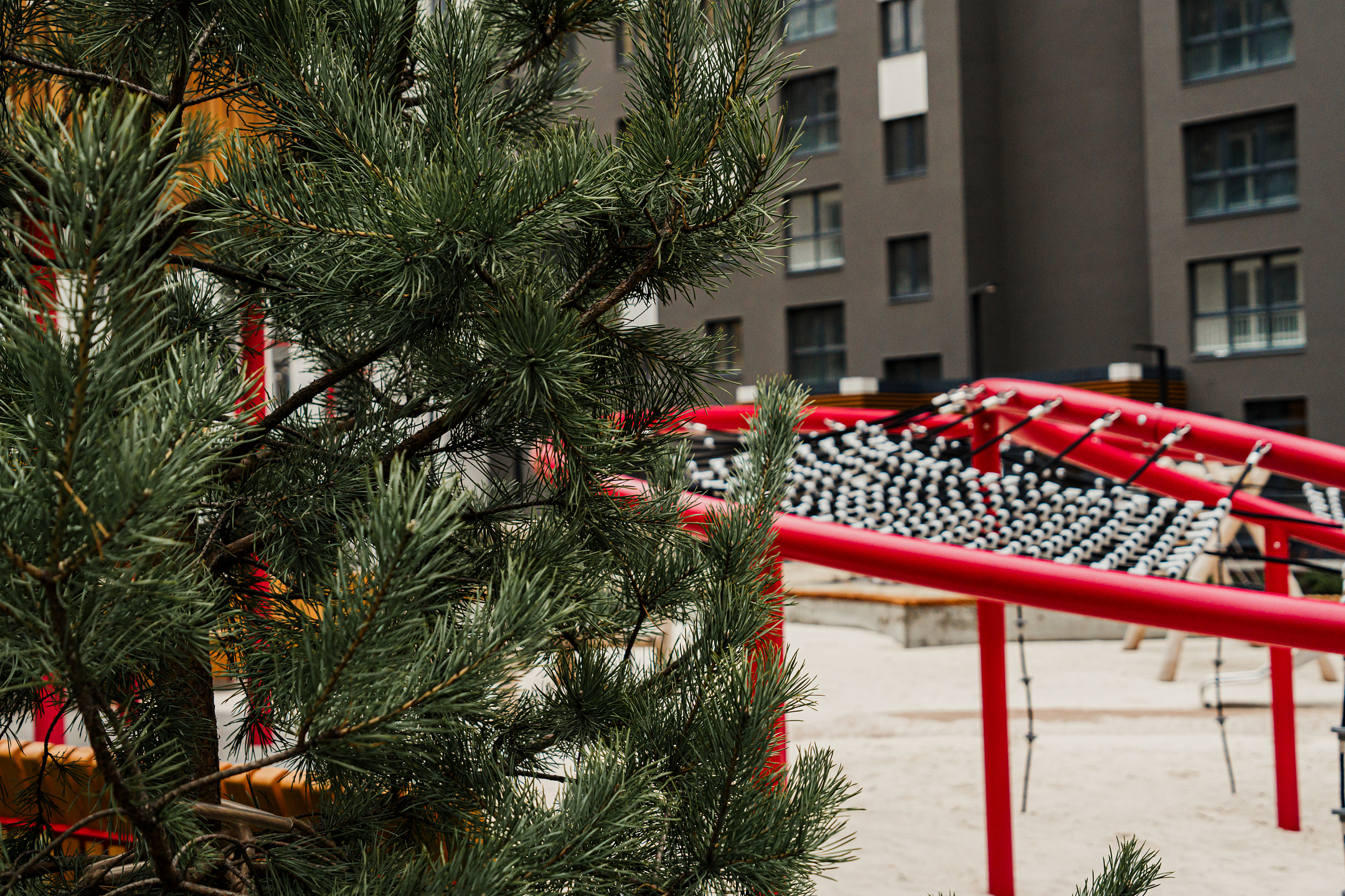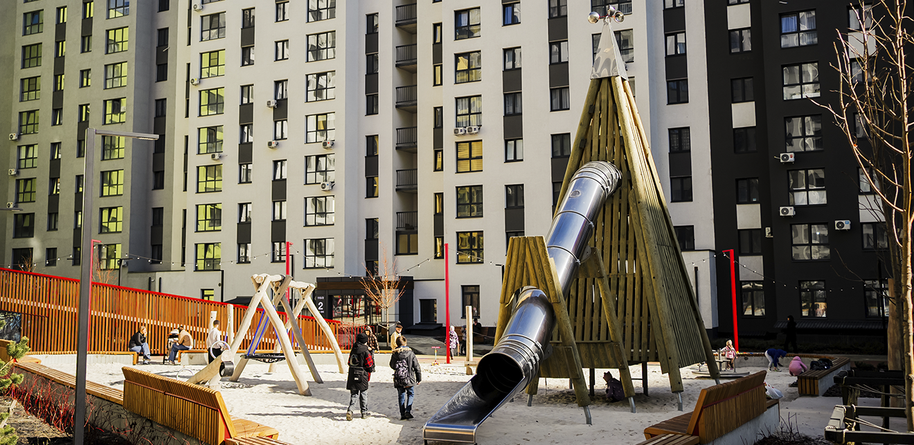 Территория ЖК включает большое количество элементов, напоминающих детали и запчасти различных механизмов. Озеленение, уникальное оборудование, беседки и малые архитектурные формы - все подчеркивает идентичность места. Подробнее в презентации.