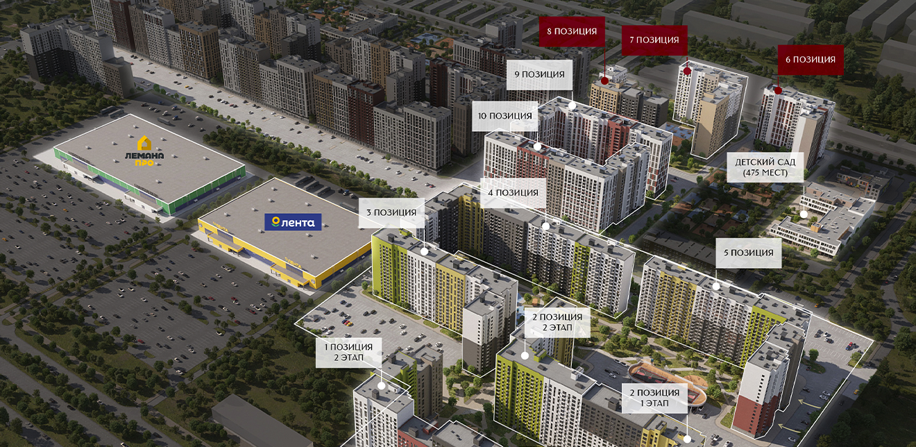 Крупный жилой квартал домов повышенной комфортности со своей инфраструктурой и уникальным благоустройством.