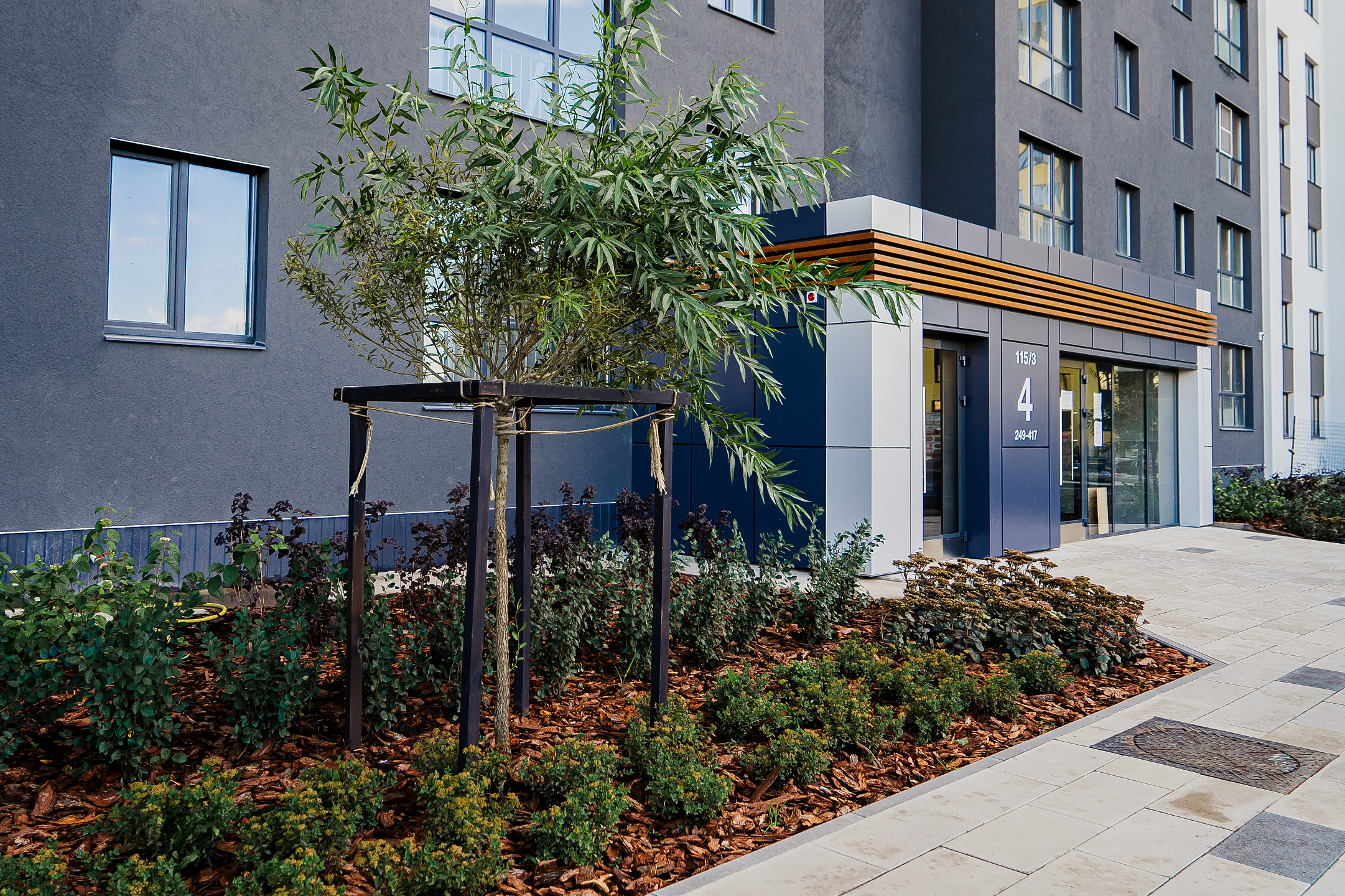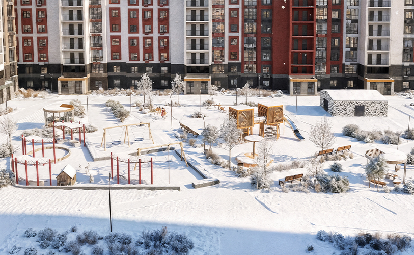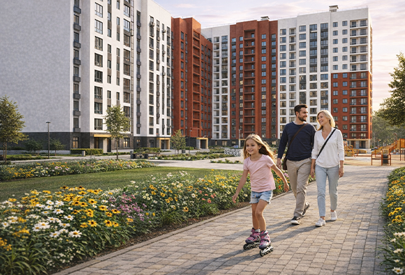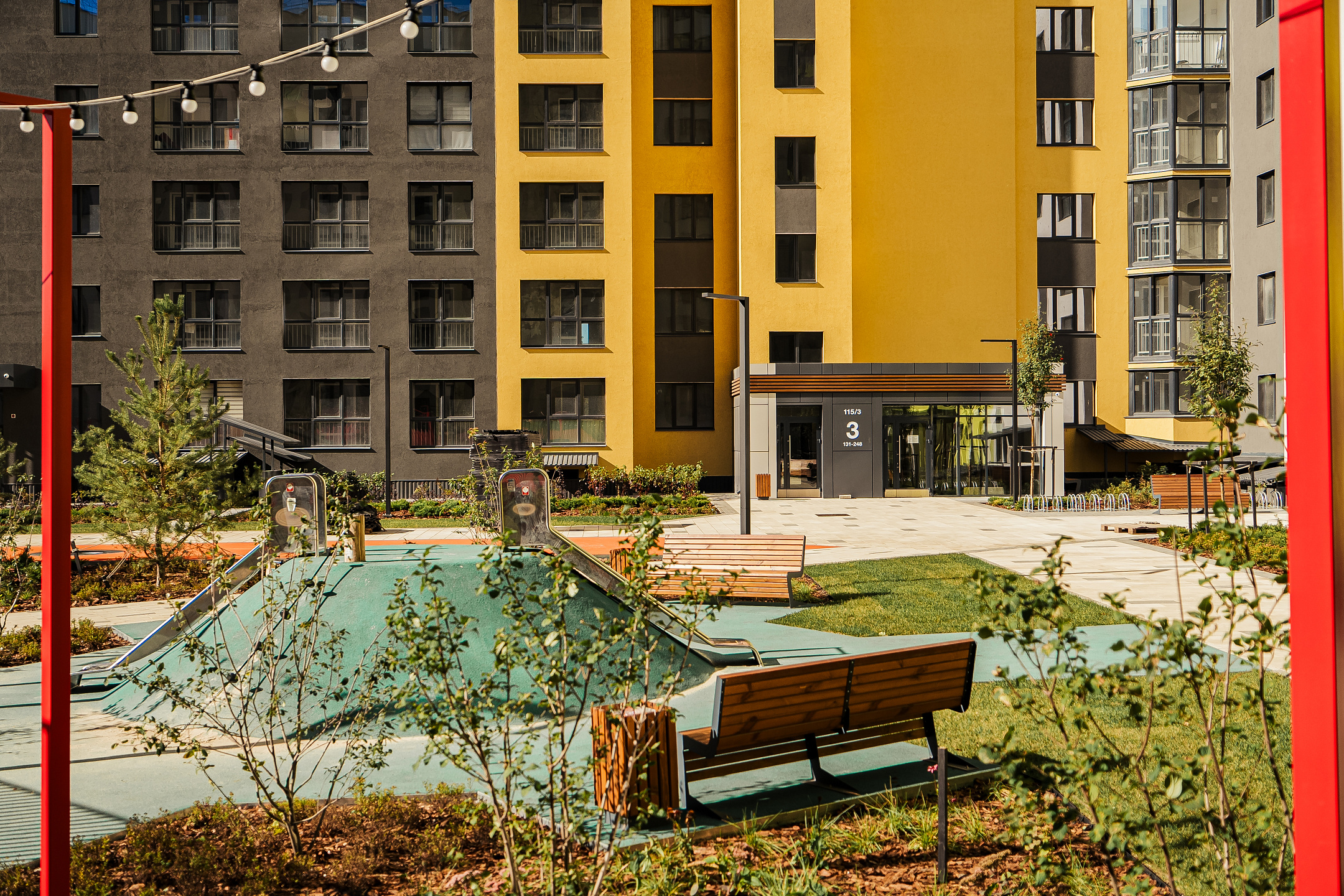 Увеличенное остекление придаёт домам лёгкость и воздушность, а также обеспечивает отличное естественное освещение квартир. Большие окна не только украшают фасады, но и позволяют жителям наслаждаться прекрасными видами на окрестности.