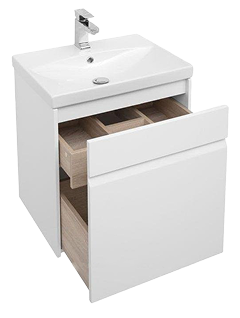 Подвесная тумба с раковиной и зеркальный шкаф или зеркало с подсветкой